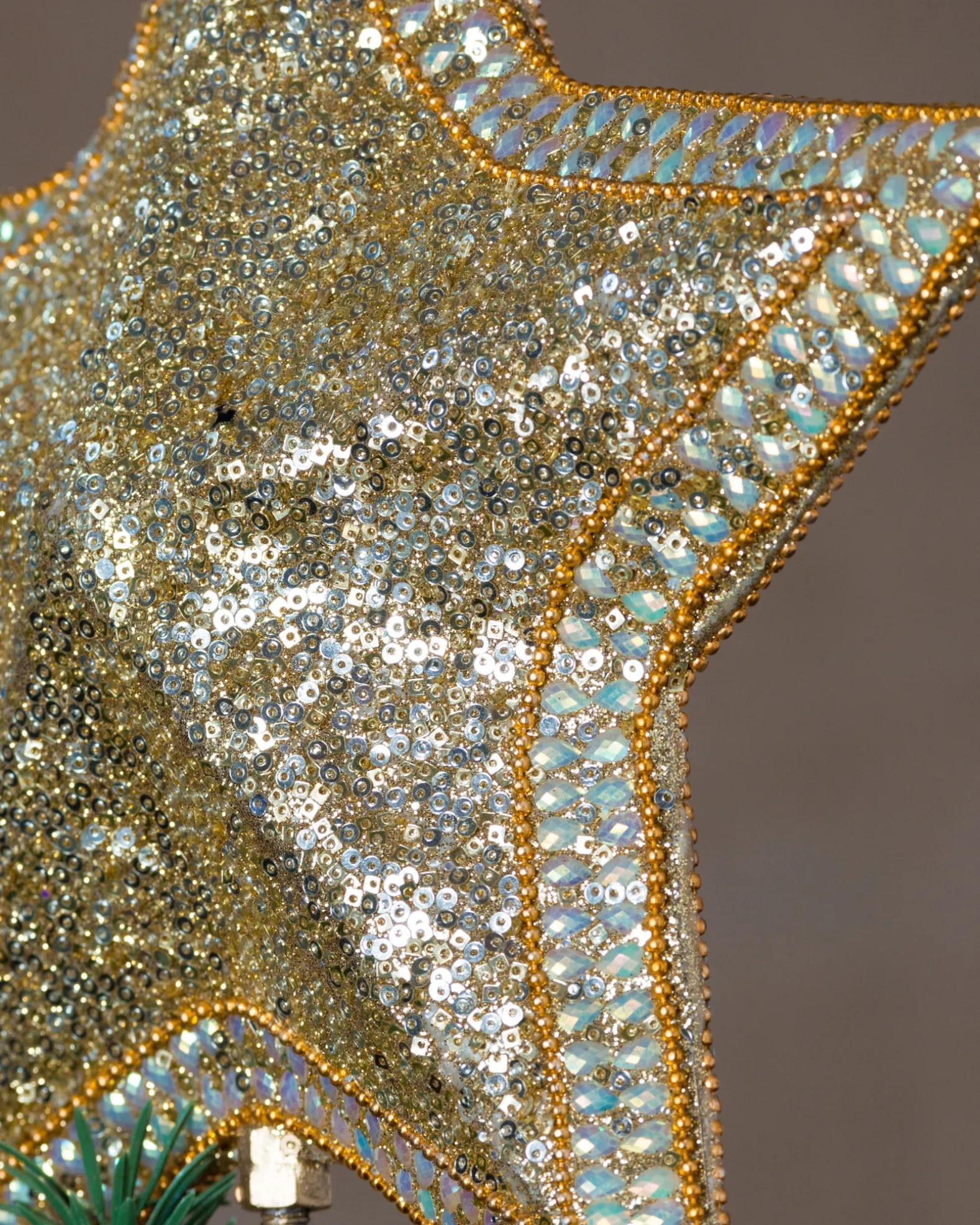 - Crafted from iron and decorated with sequins, beads, glitter, and fabric