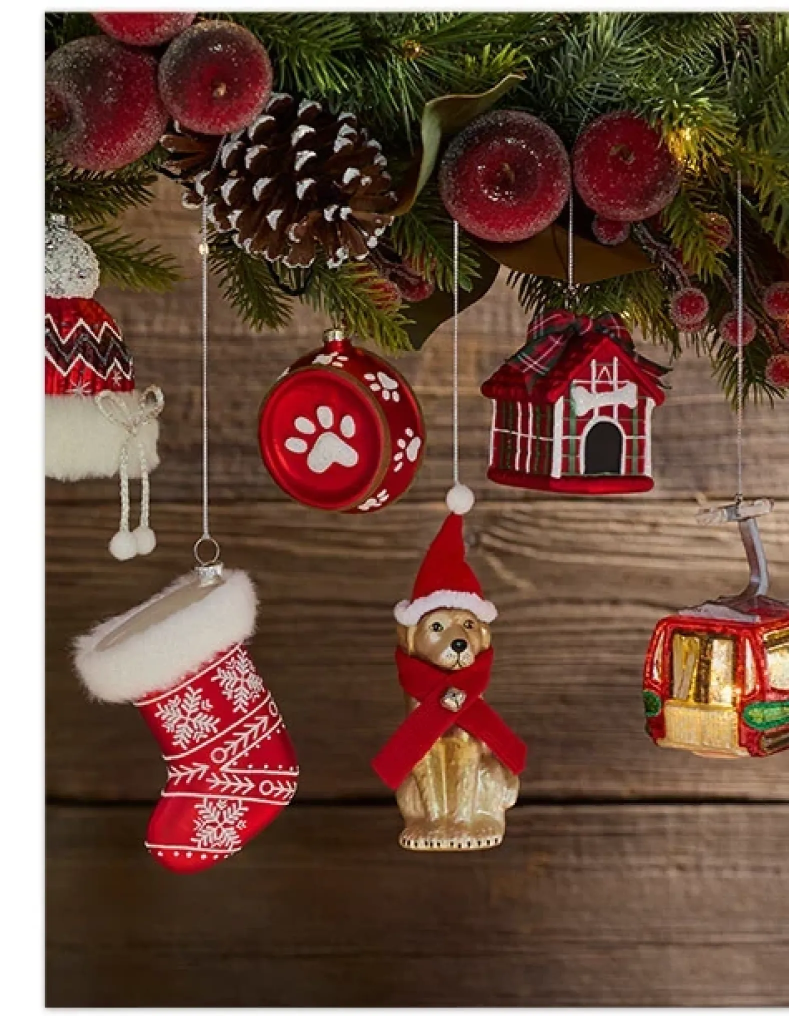 - Feature ornaments in varying shades of red, accented by silver glitter