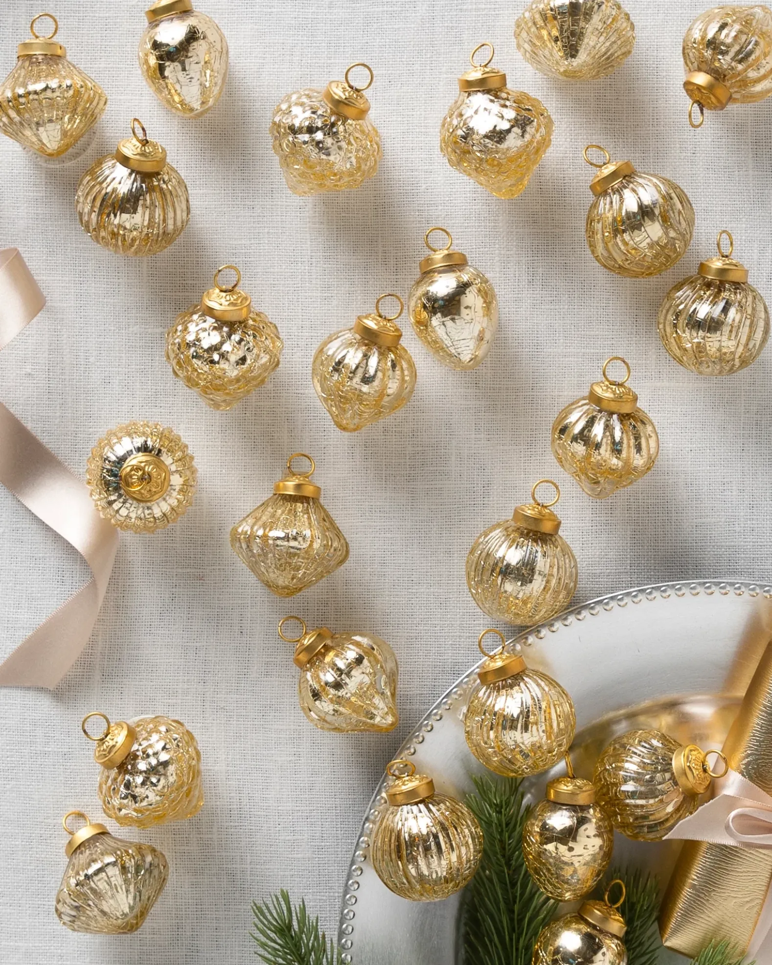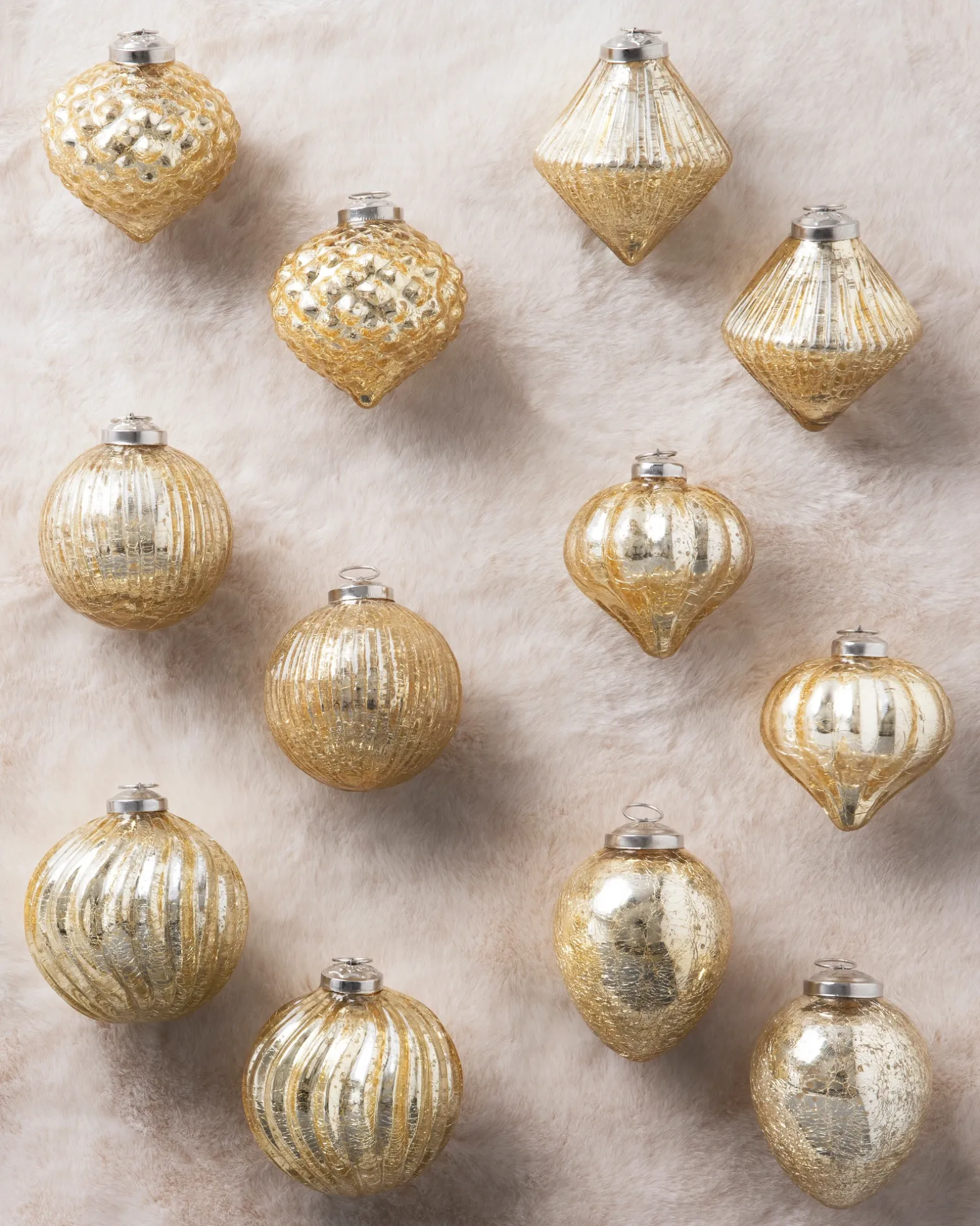 Add a luxurious touch to your holiday decorating with beautiful mercury glass ornaments. Mix and match these vintage accents with other BH Essentials collections or set as bowl fillers for tabletops and mantels.