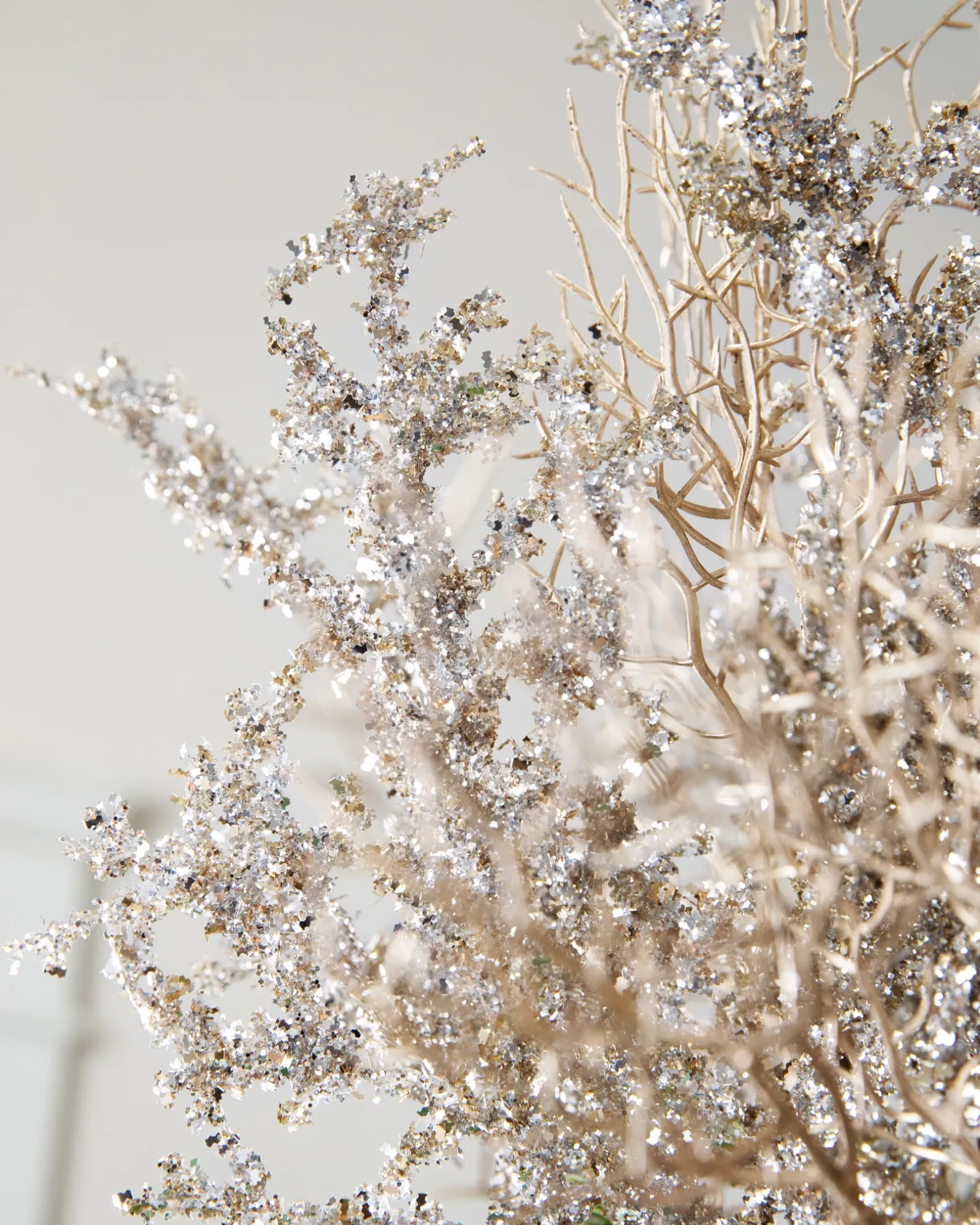 - Features branches with a mix of lightly- and generously-glittered faux coral