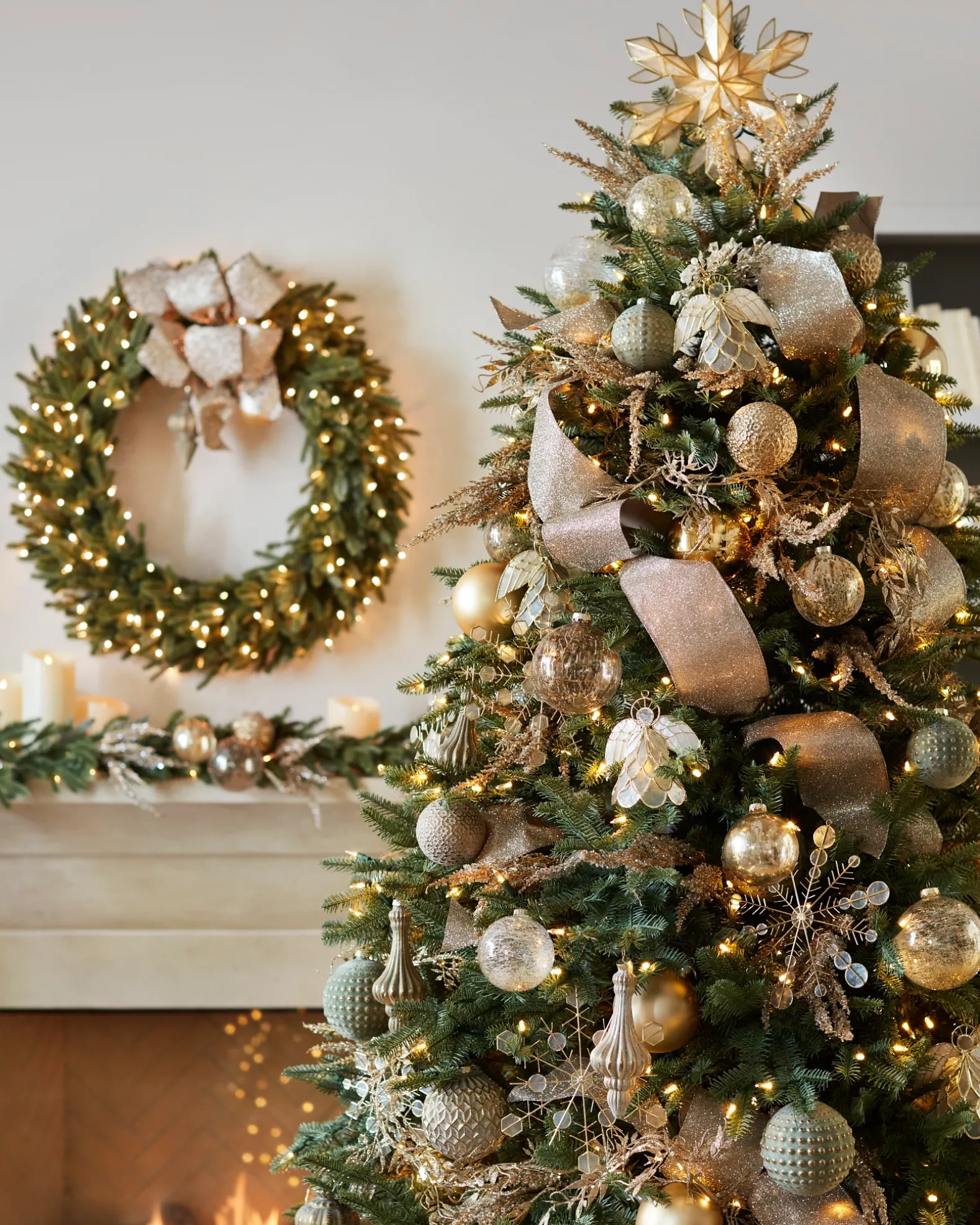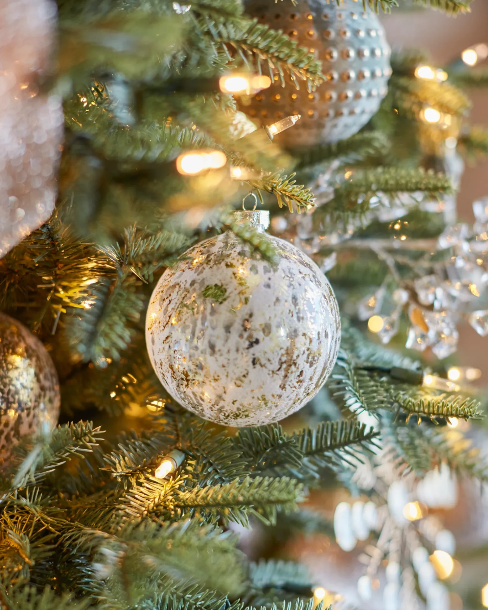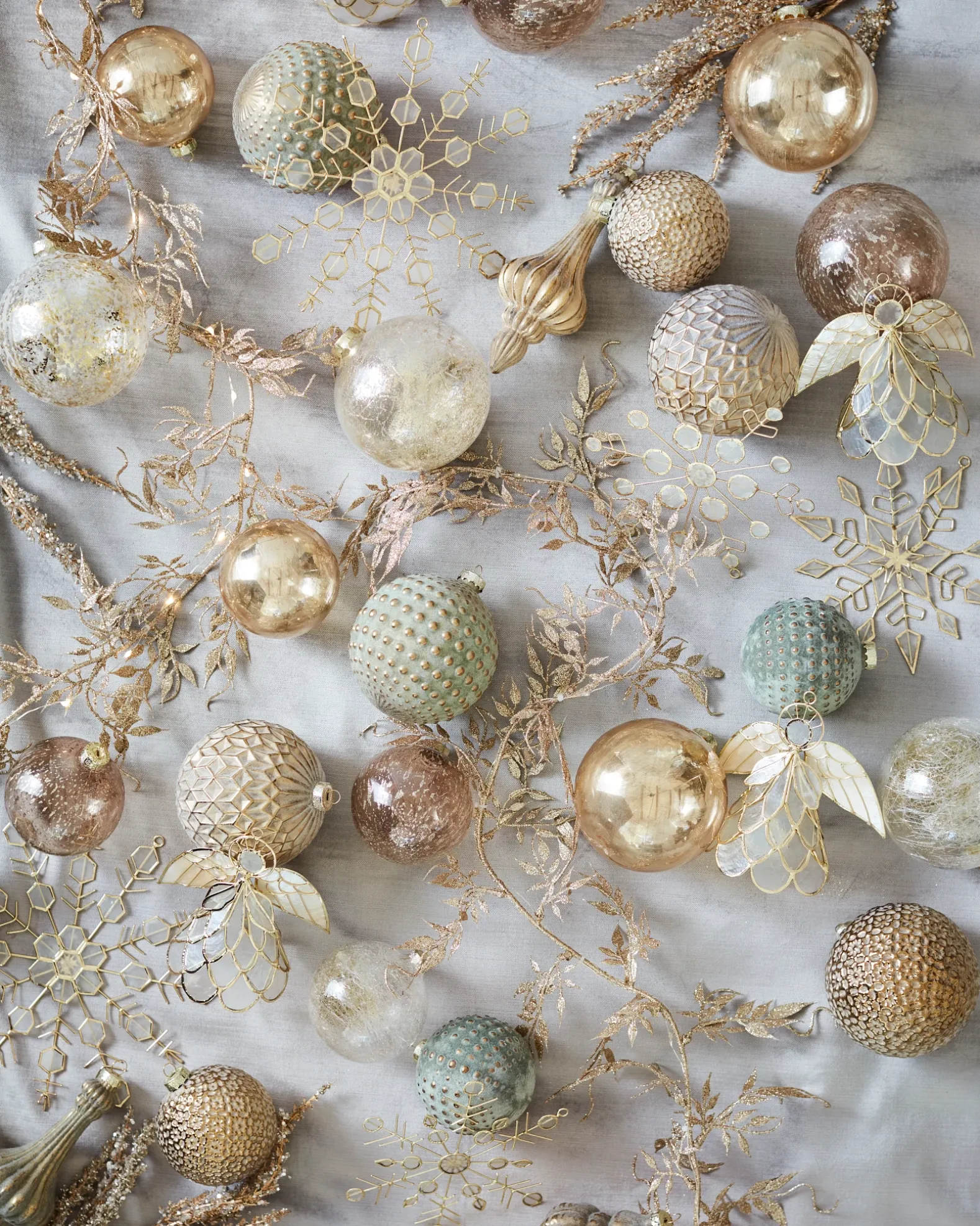 Create stunning contrast with earthy tones and hints of gold. Add luster to your tree with the blend of glittery glamour and old-world elegance of these metallic glass ornaments.