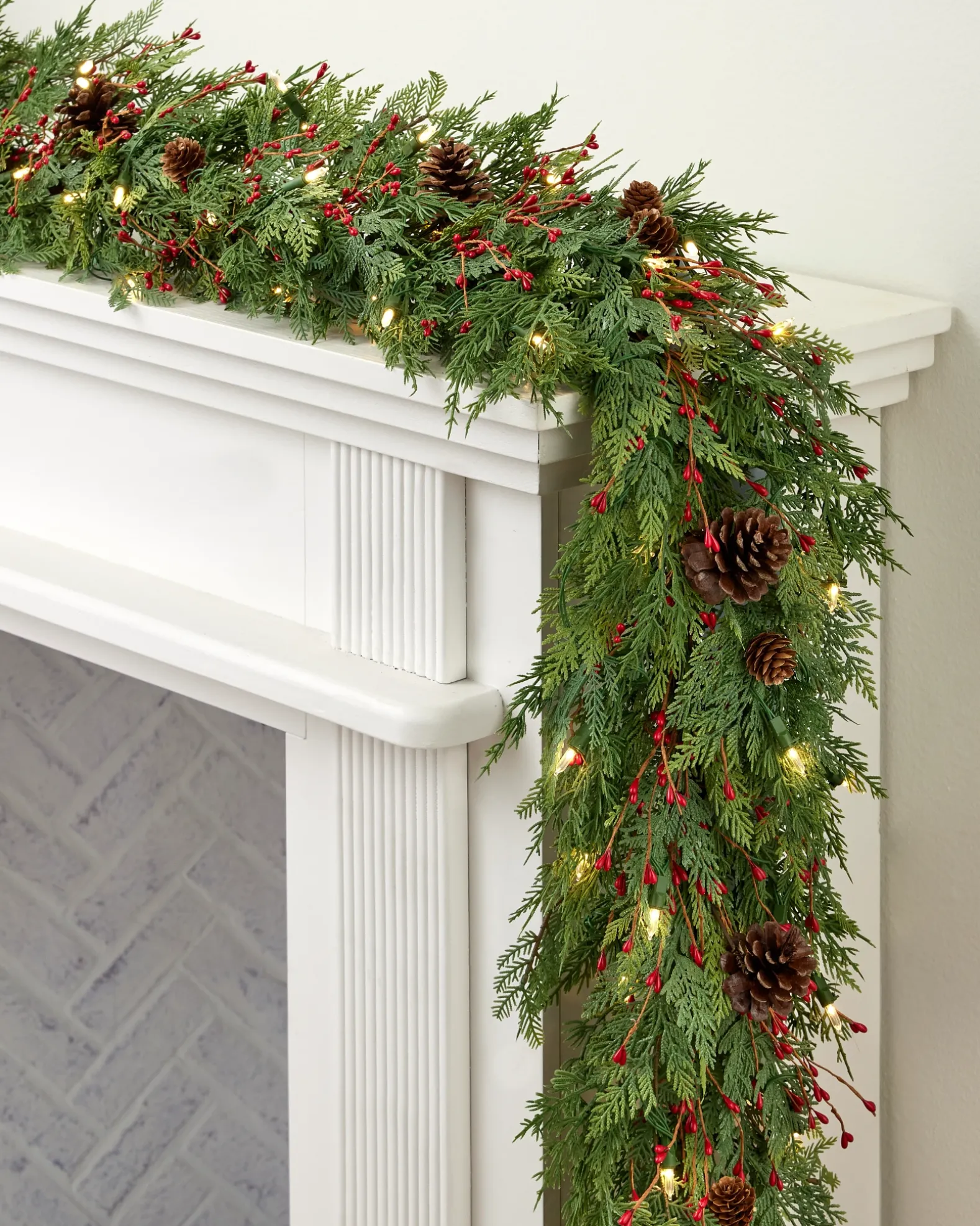 Adorn your home with quintessential Christmas foliage refreshed by pops of red. Set against doors, mantels, or banisters to bring a cozy holiday atmosphere.