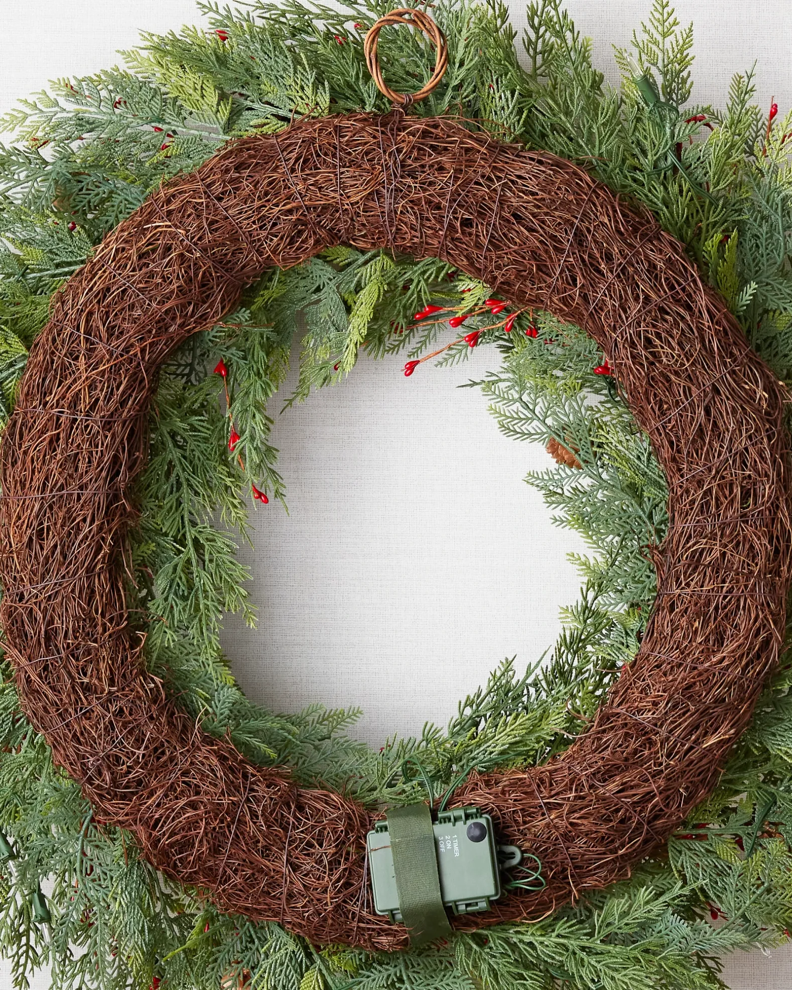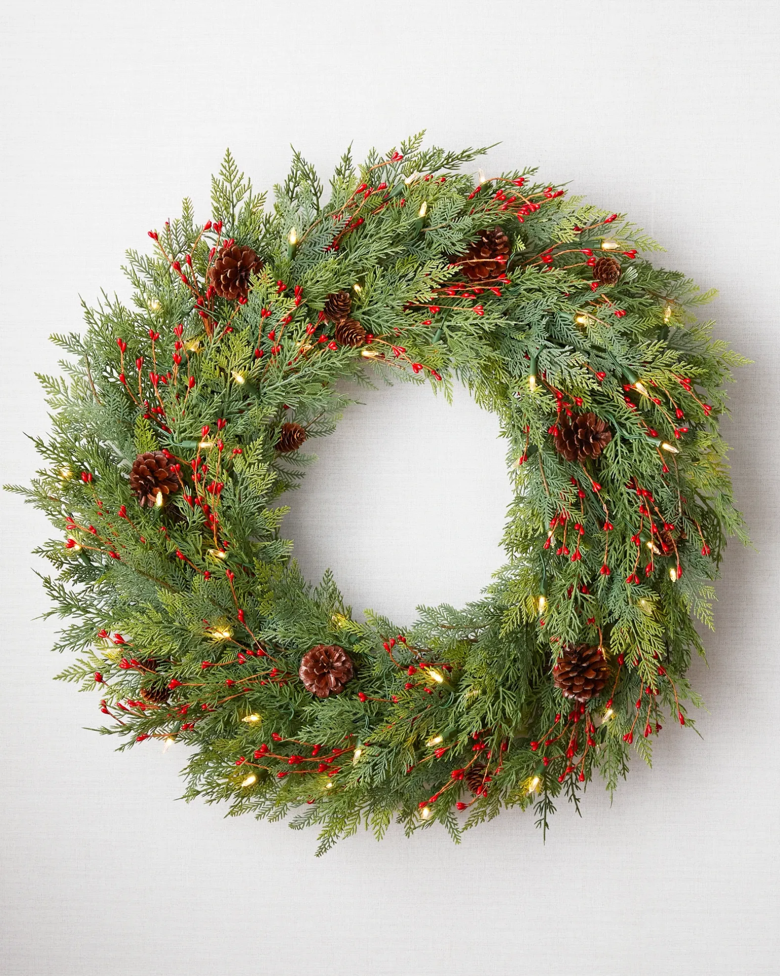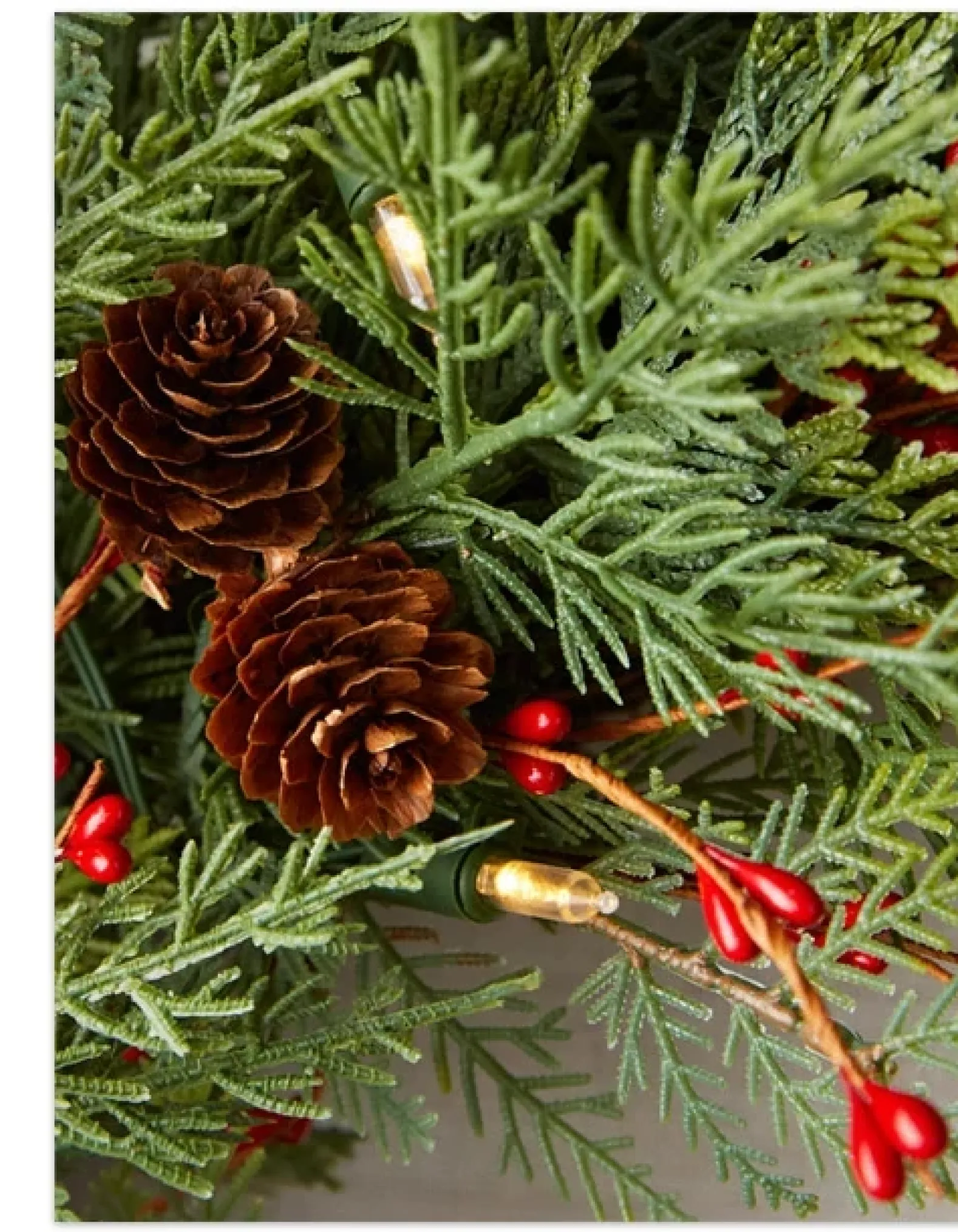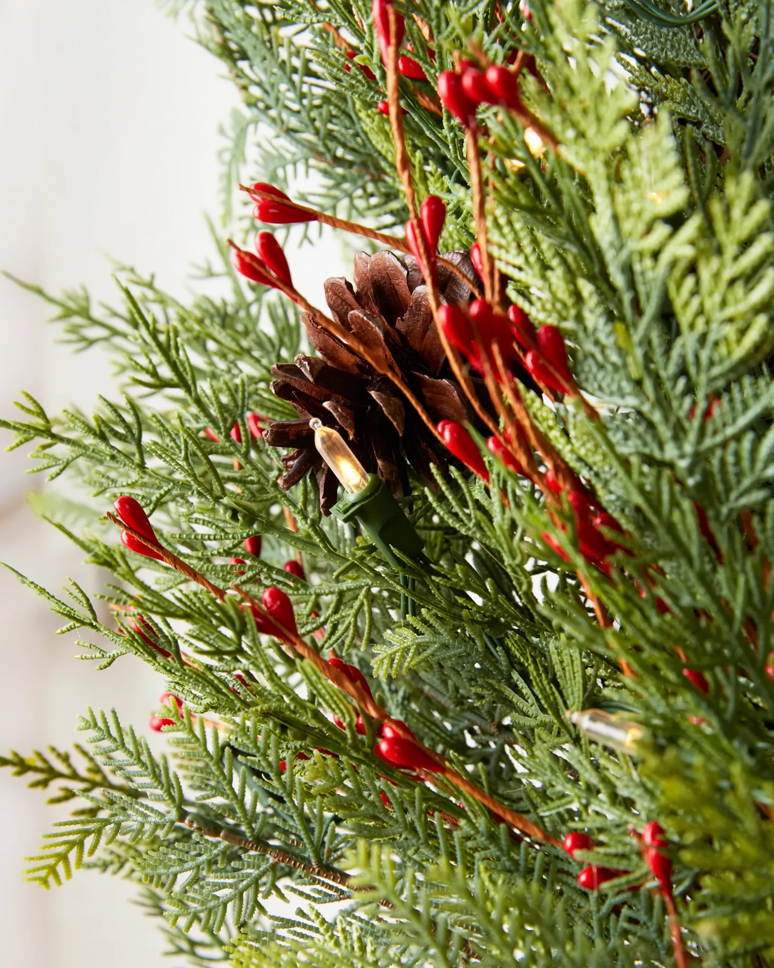 - All products in this collection feature lifelike cedar and fern foliage, highlighted by faux red berries.