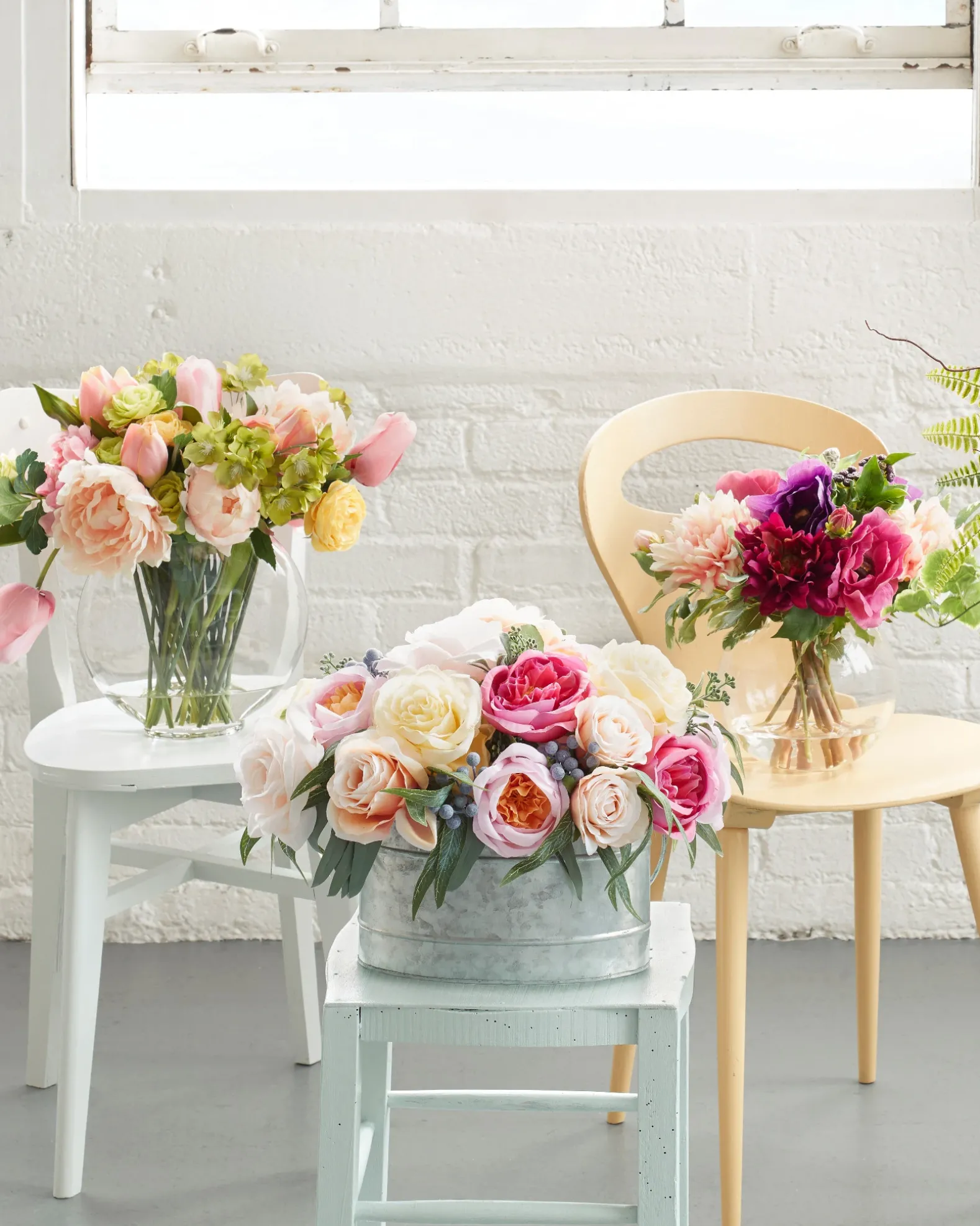 - Crafted from hand-painted polyester petals and leaves on lifelike stems