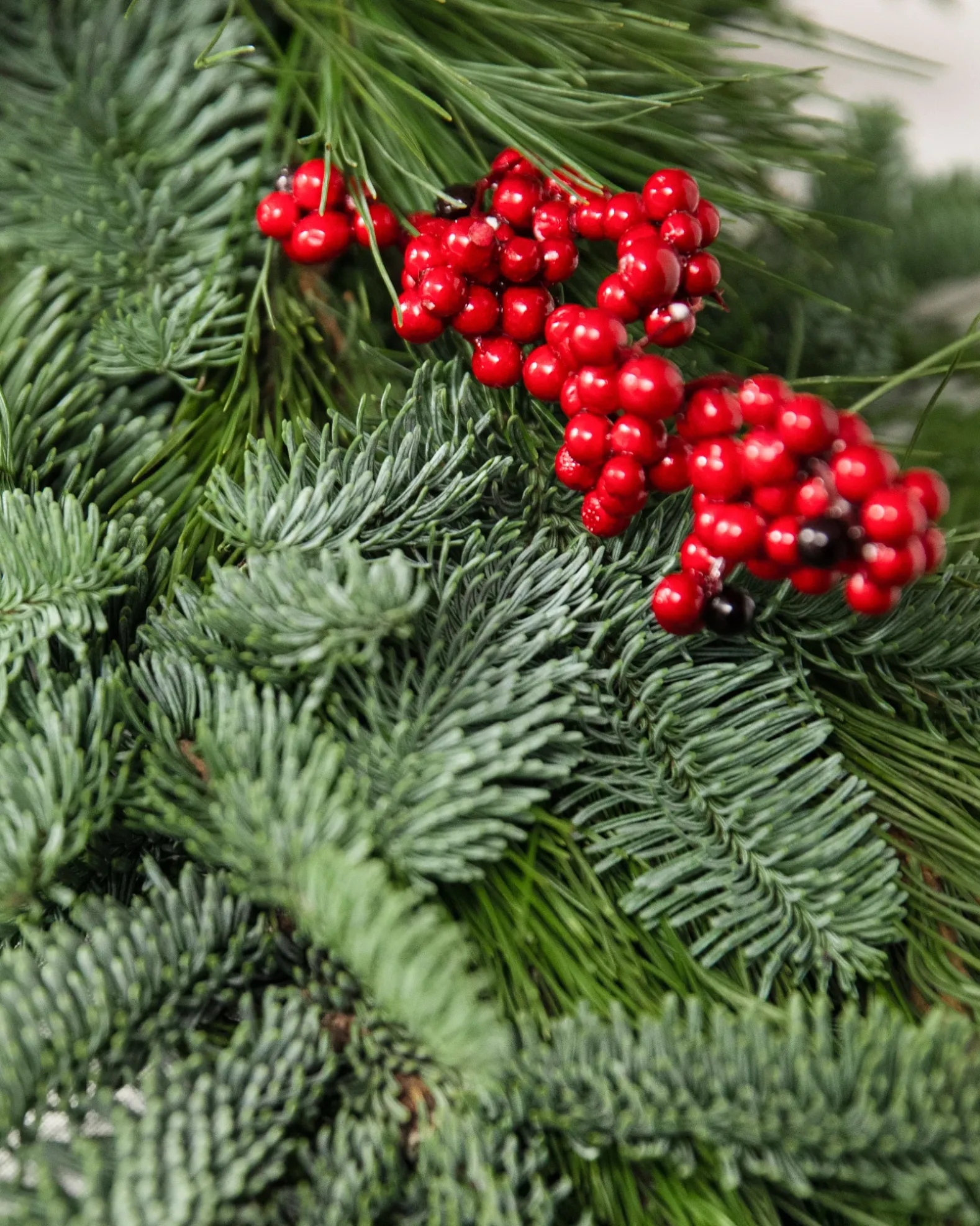 - All products in this collection feature fresh cedar and noble fir foliage accented with natural pinecones and faux canella berries.