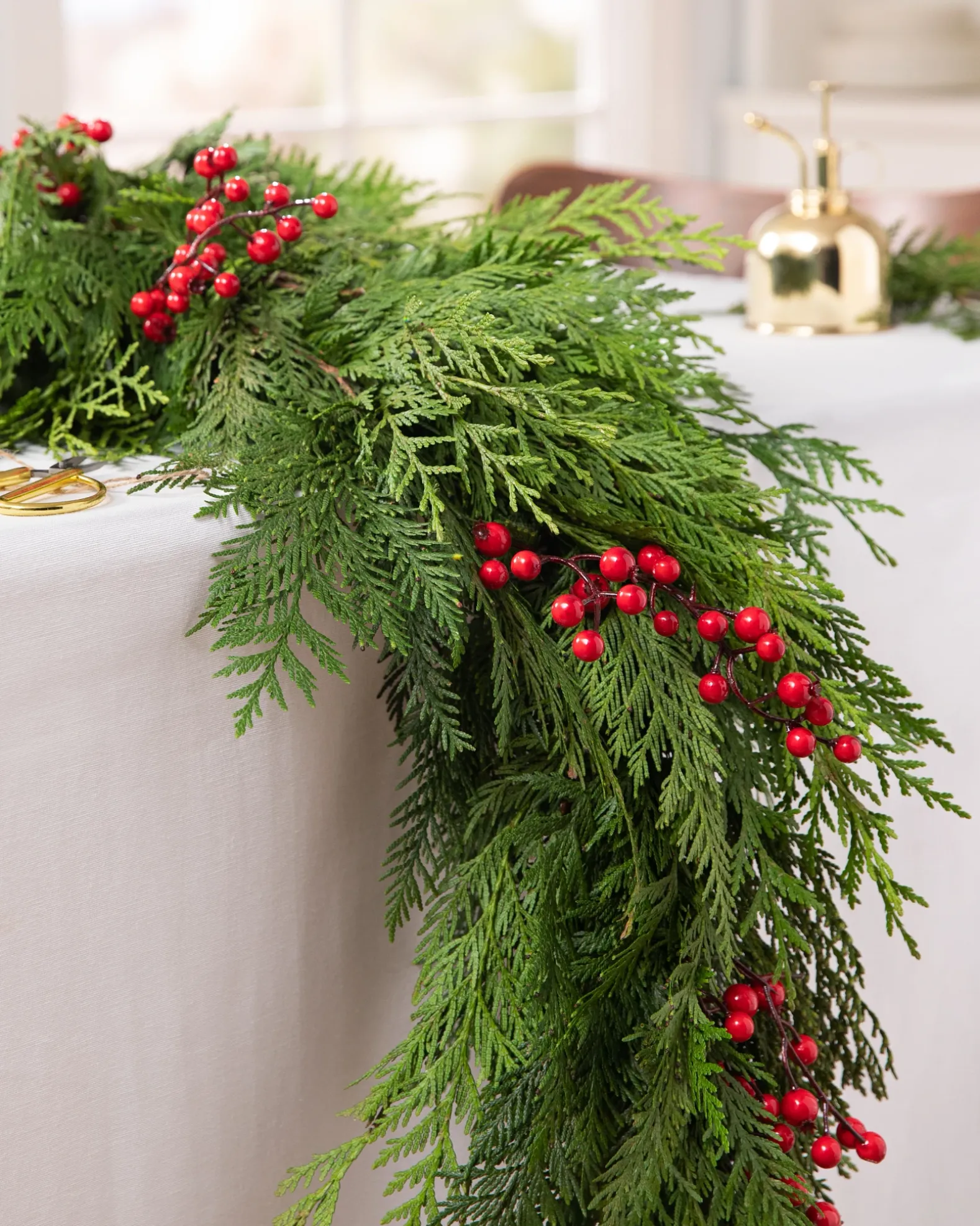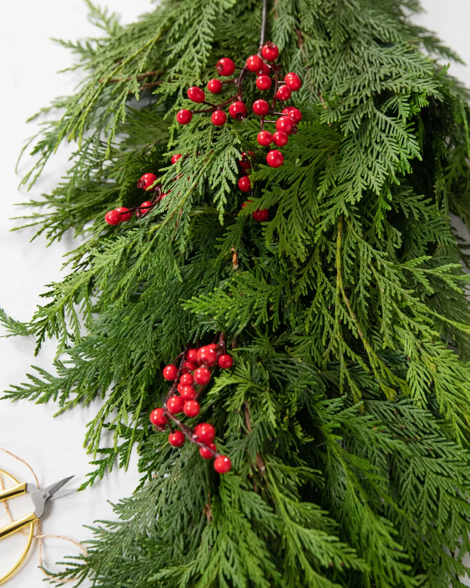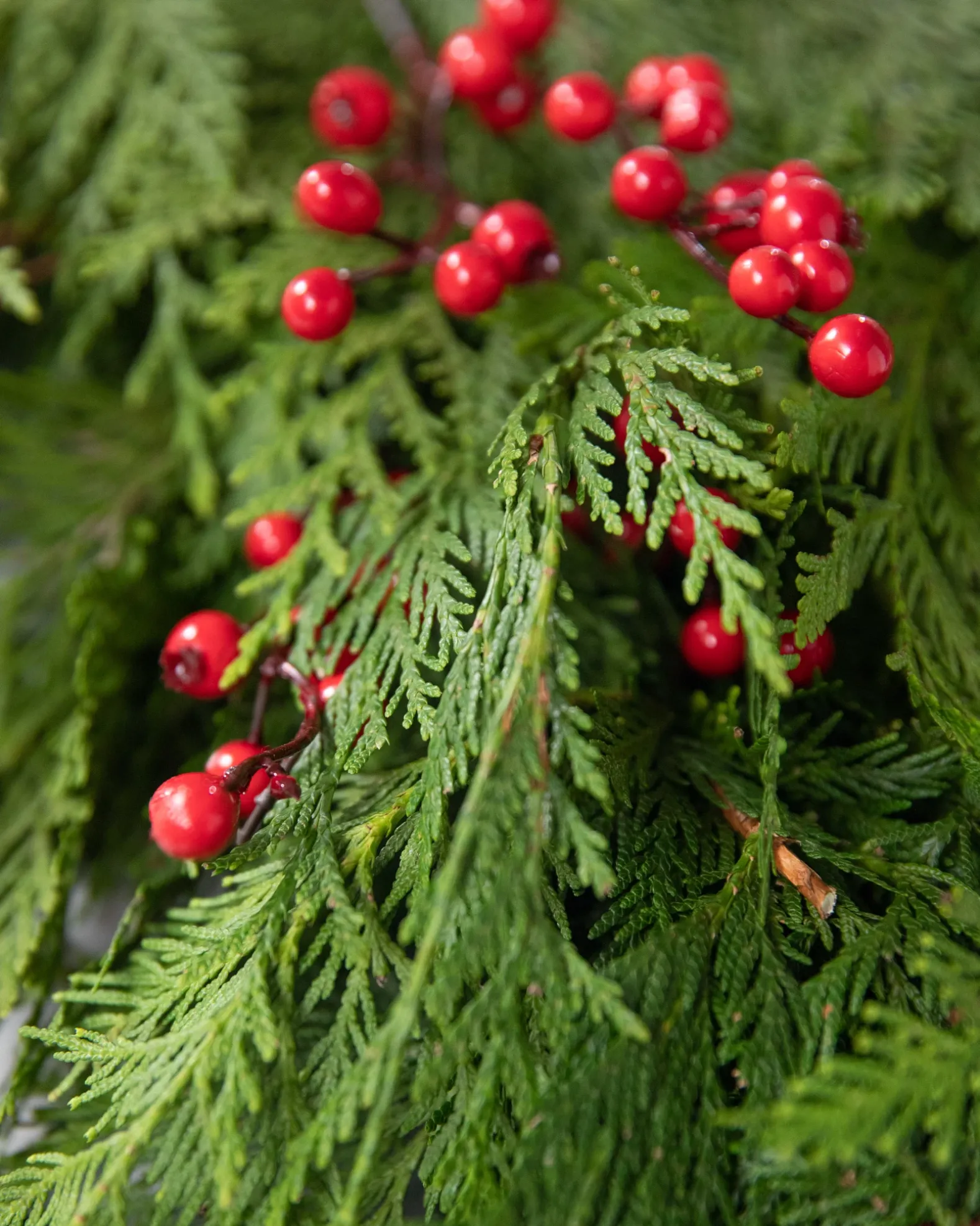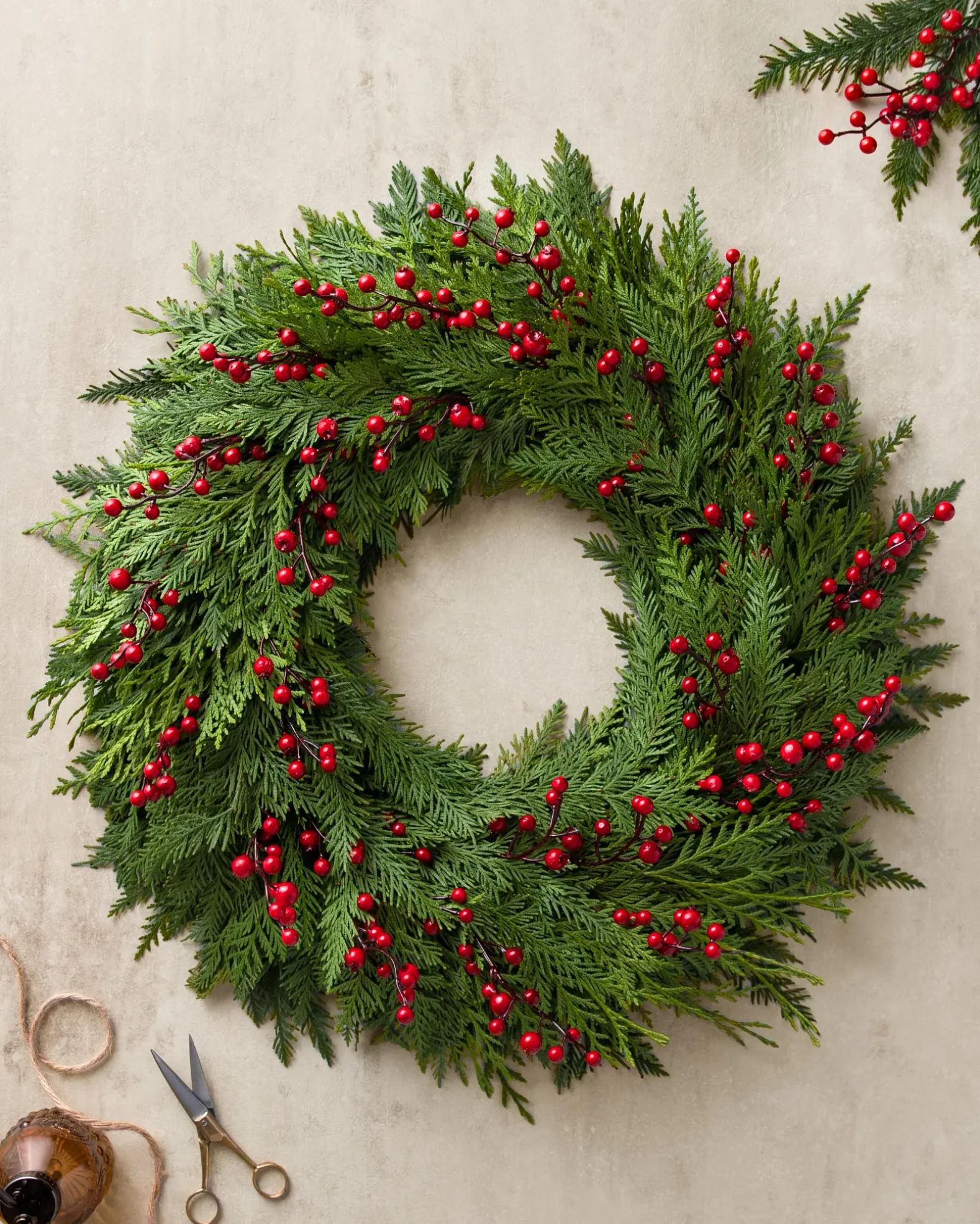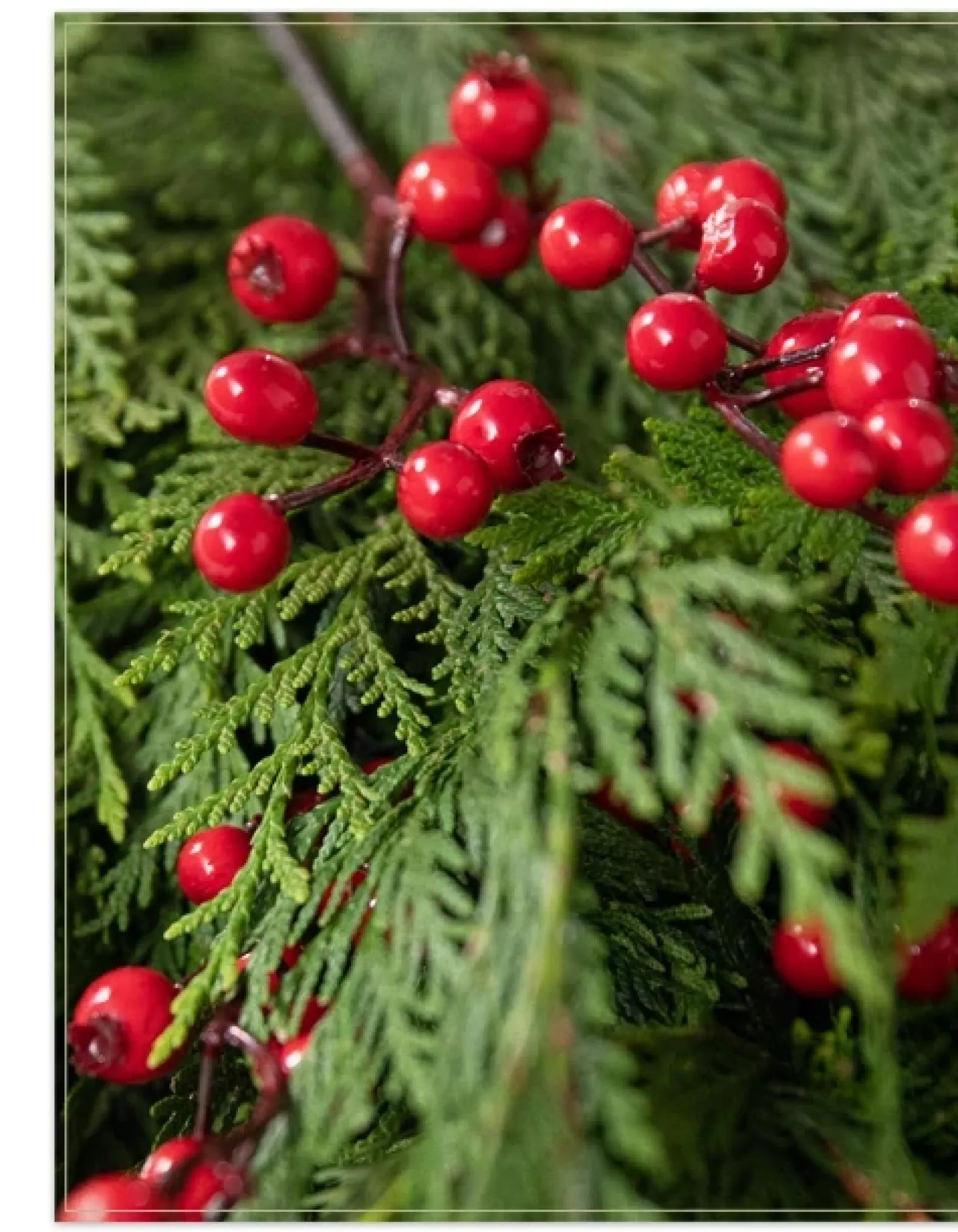 - All products in this collection feature fresh cedar and faux berries.