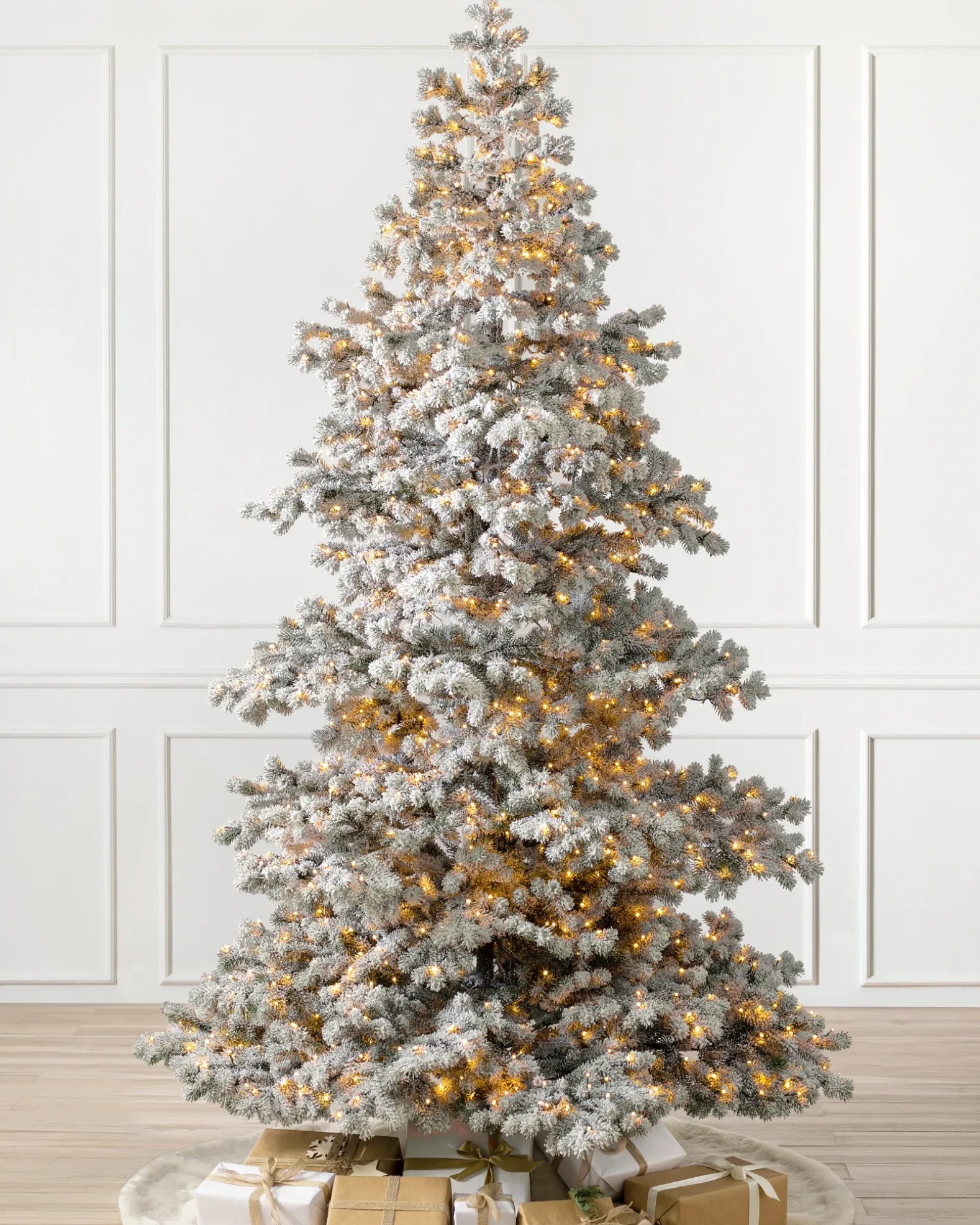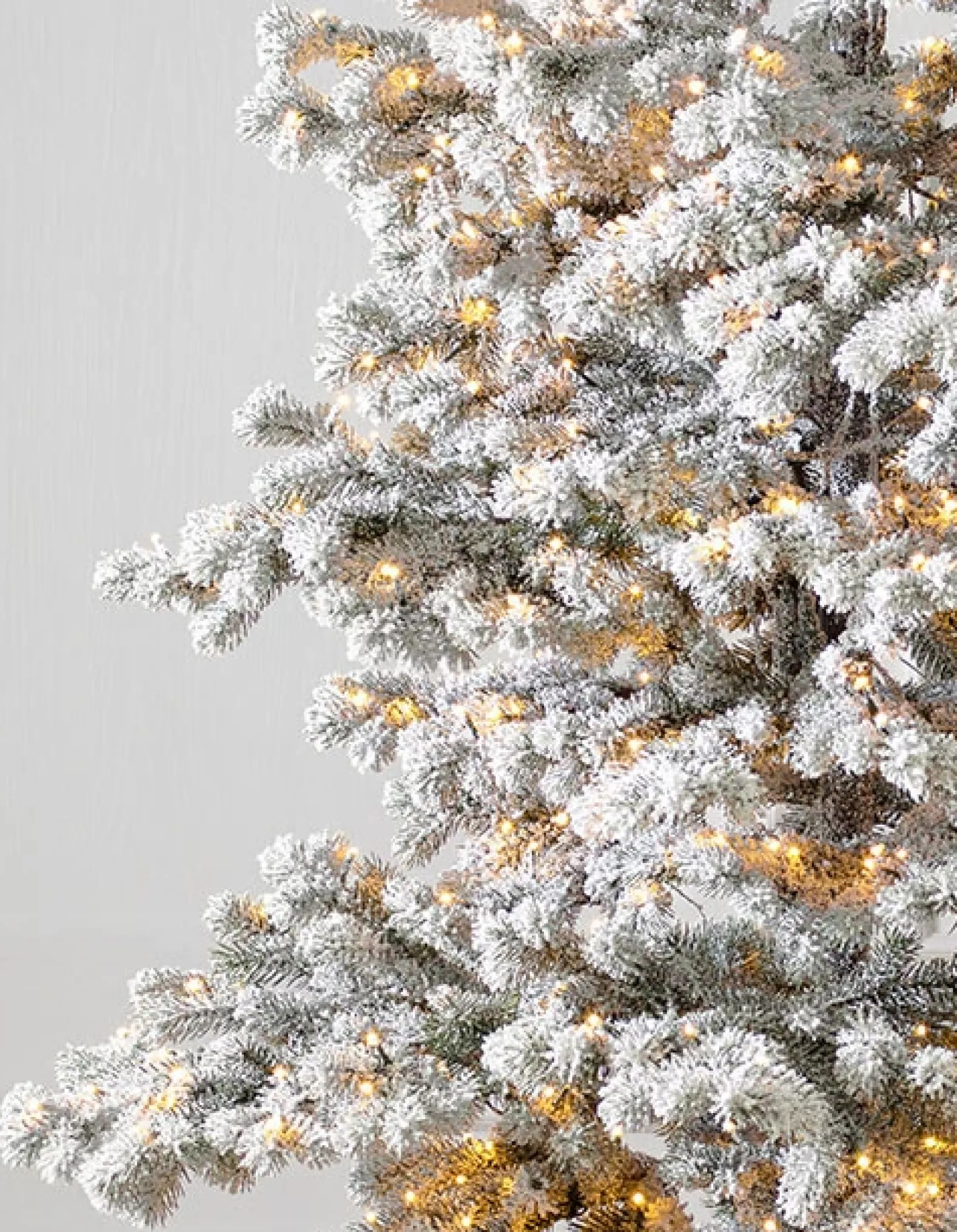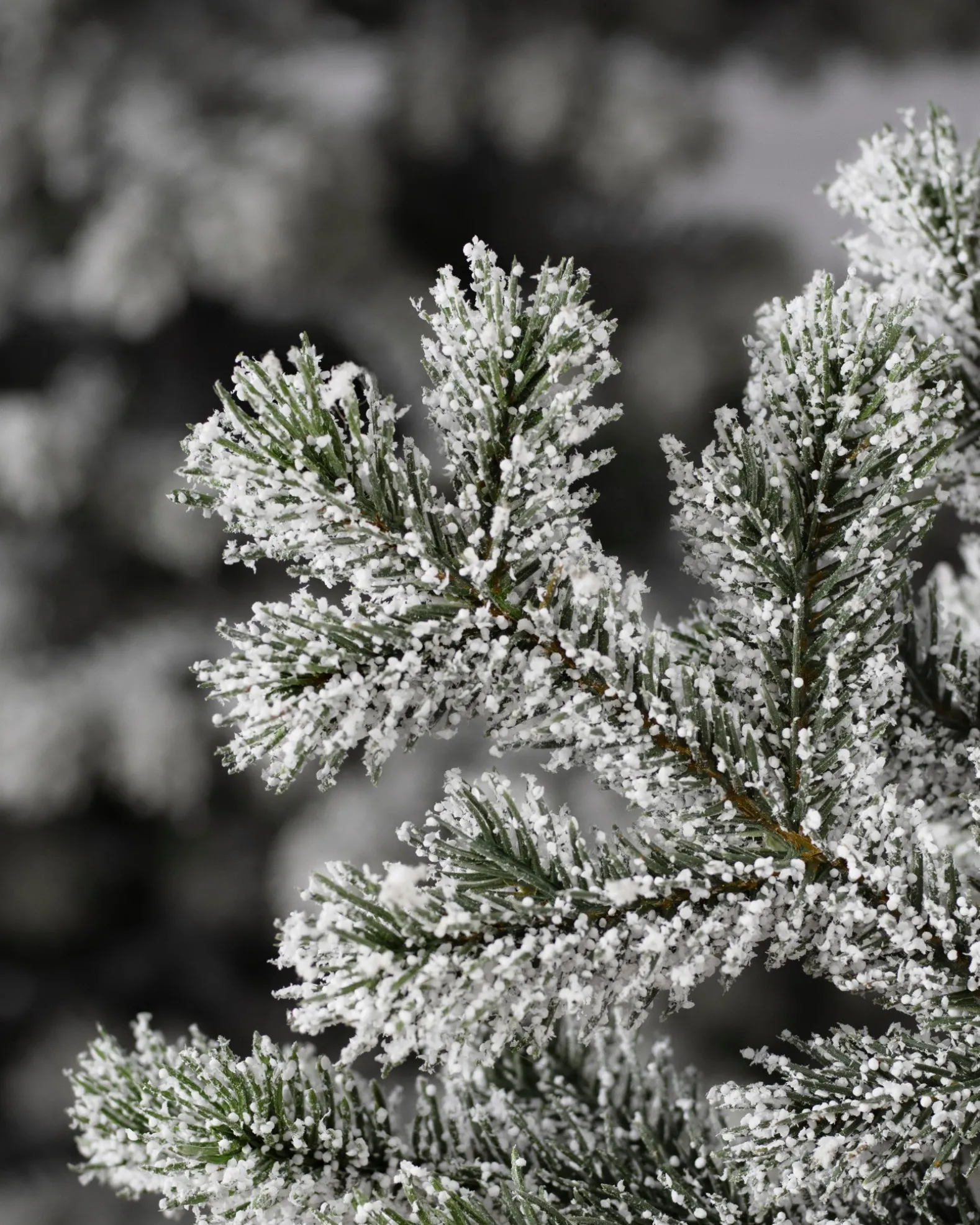Delight loved ones with the pristine beauty of a white Christmas. With its asymmetrical shape and snow-covered tips, this spruce has a festive wintry look that brightens up any holiday celebration.
