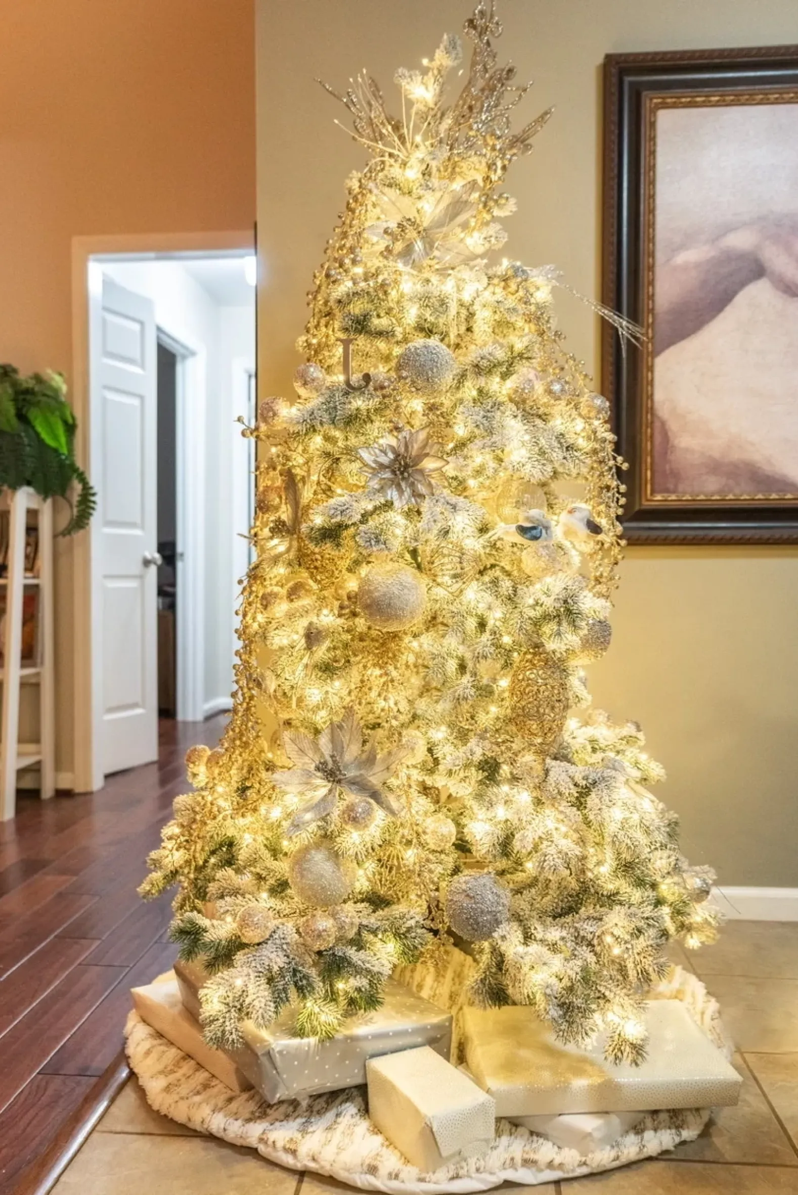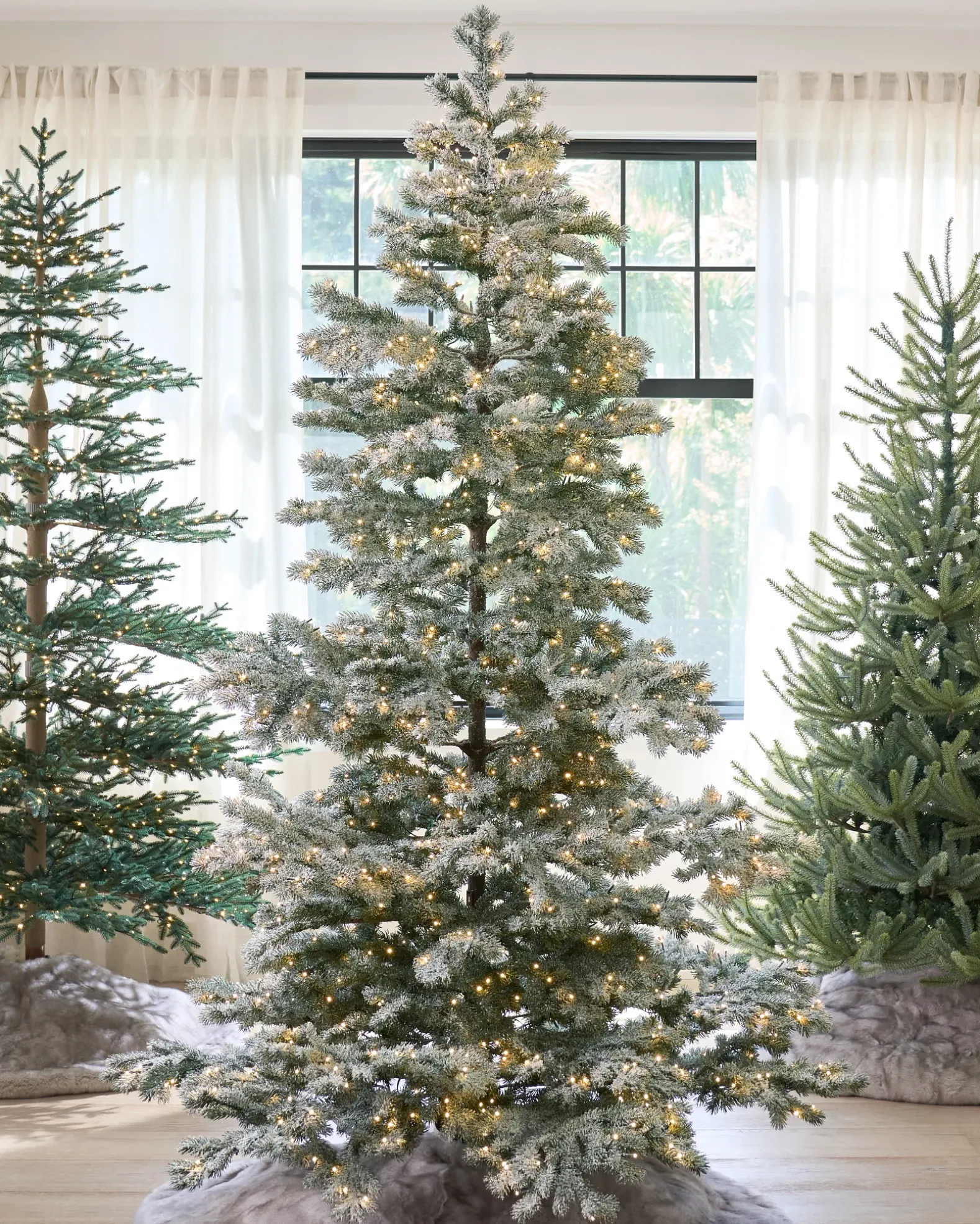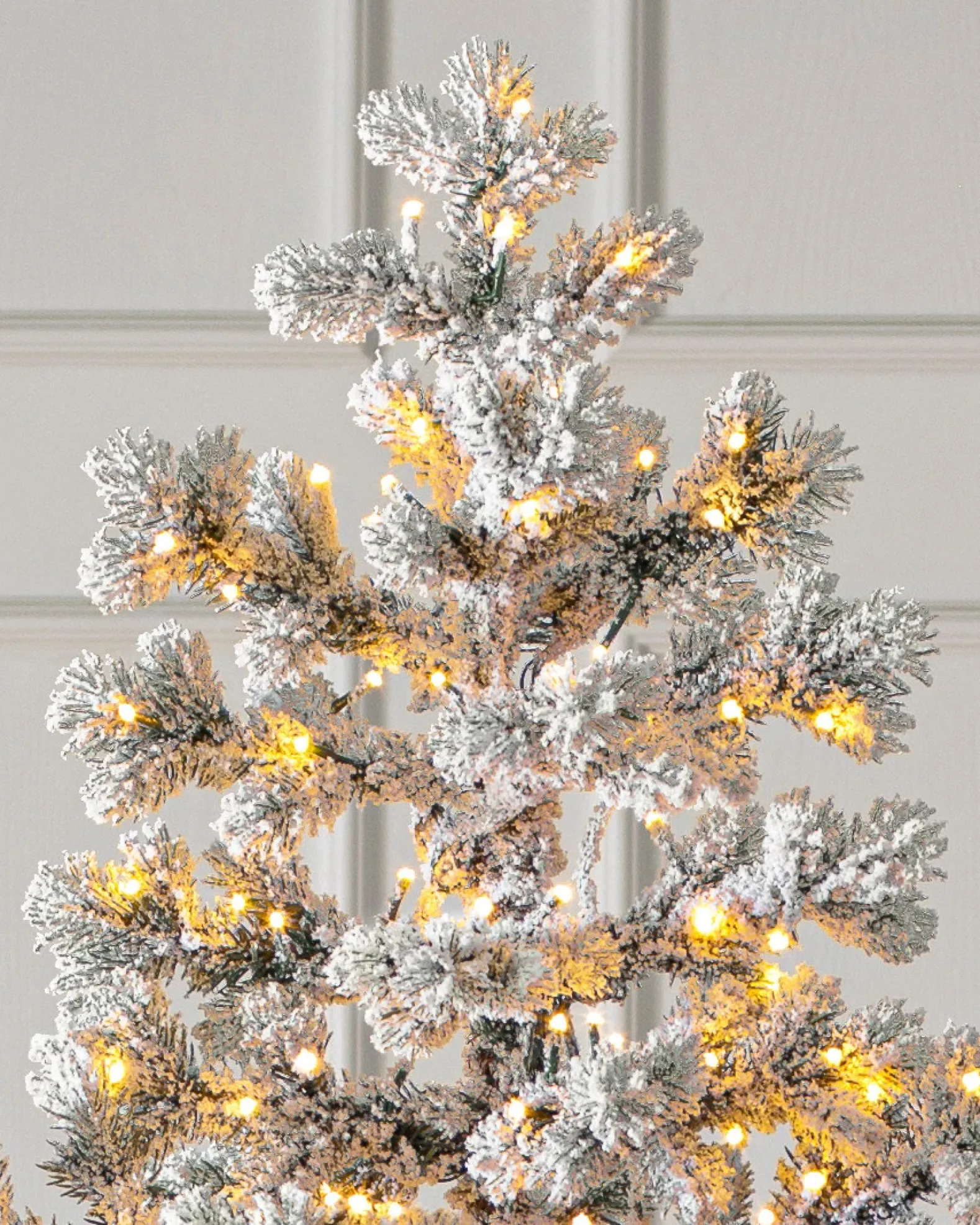 Delight loved ones with the pristine beauty of a white Christmas. With its asymmetrical shape and snow-covered tips, this spruce has a festive wintry look that brightens up any holiday celebration.