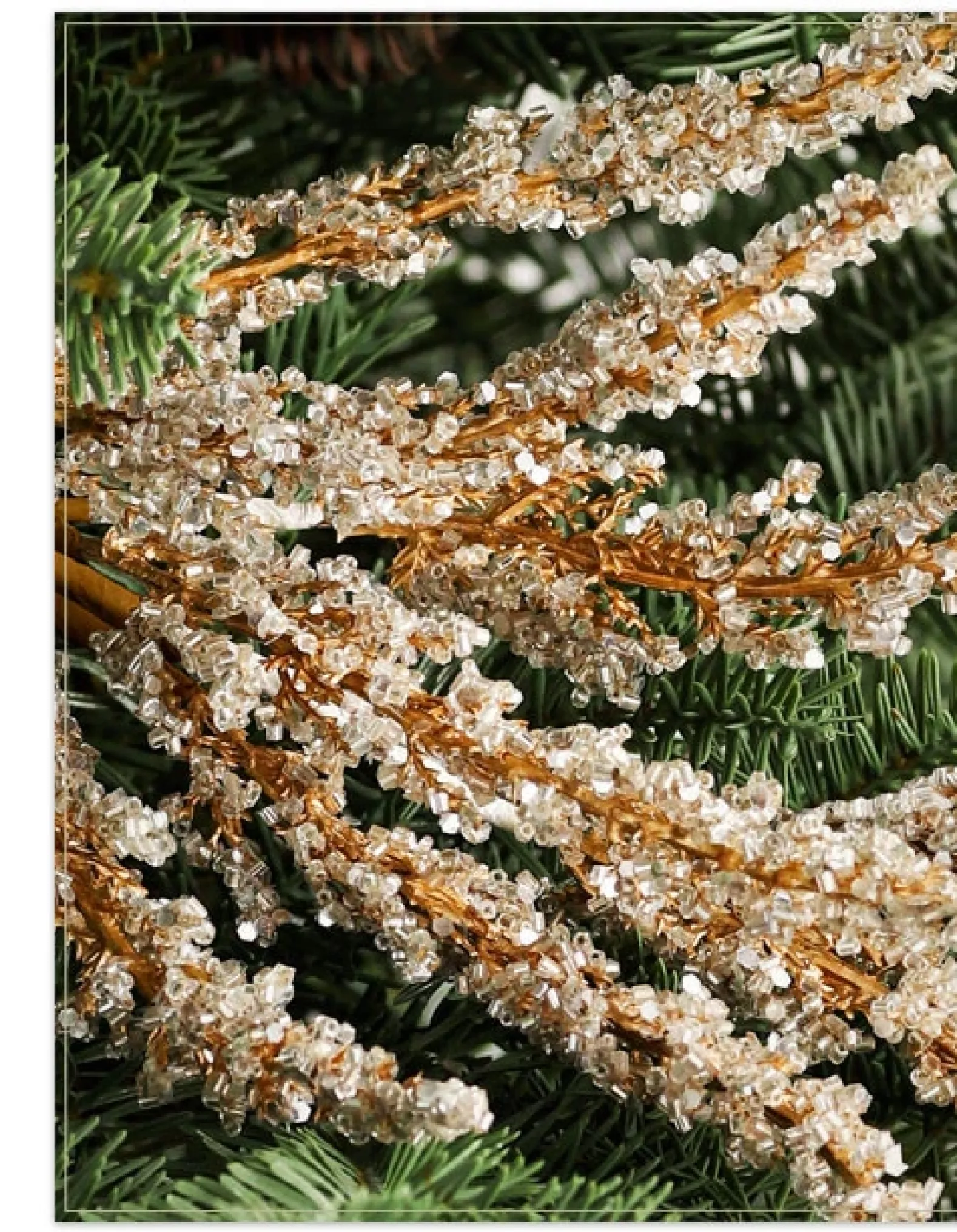 - Features champagne-glittered branches