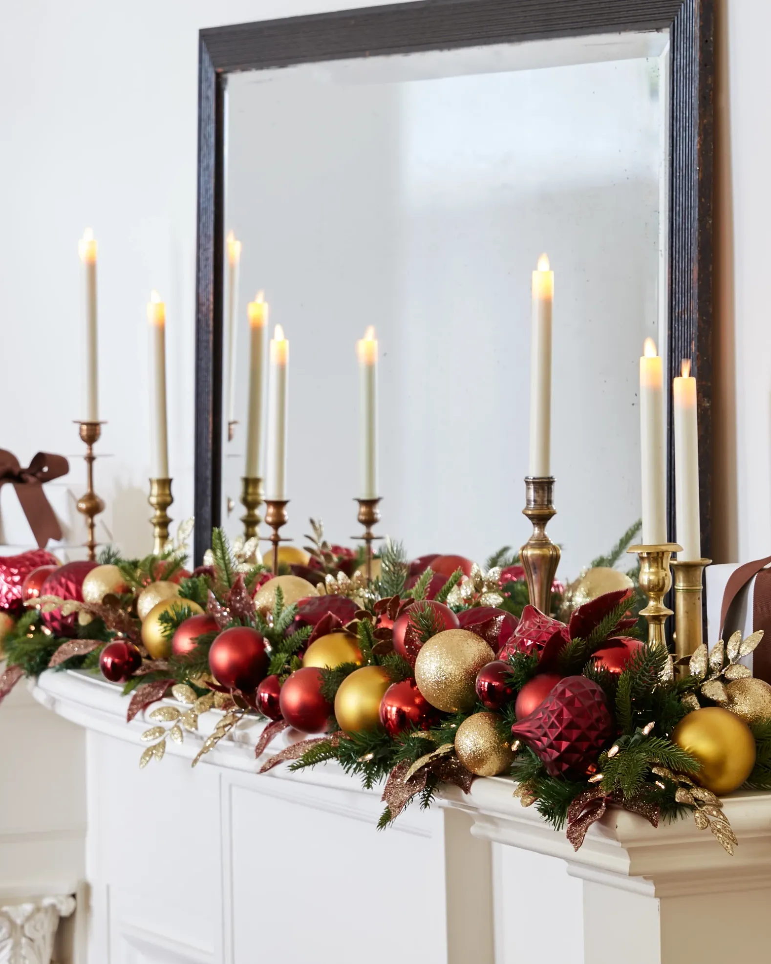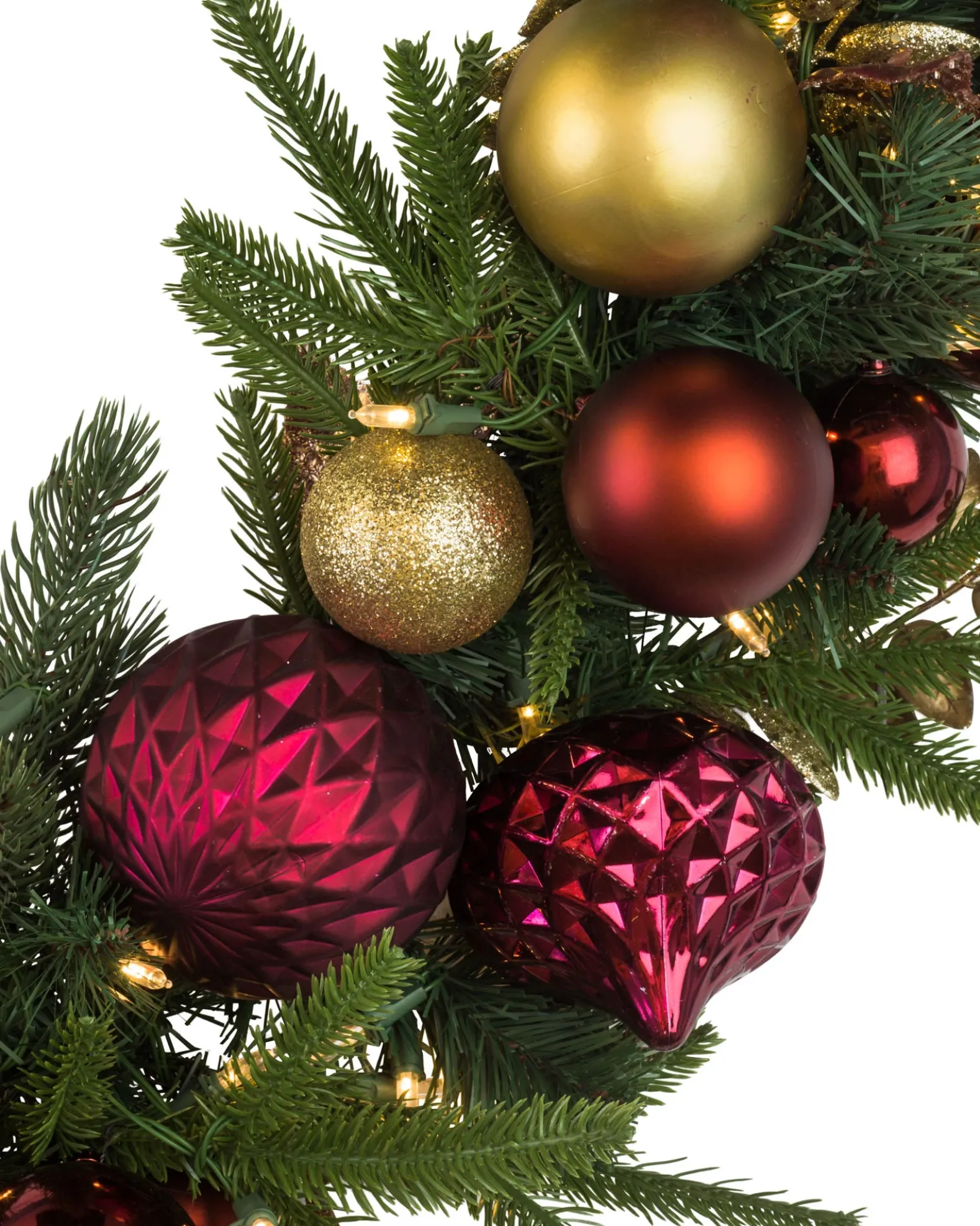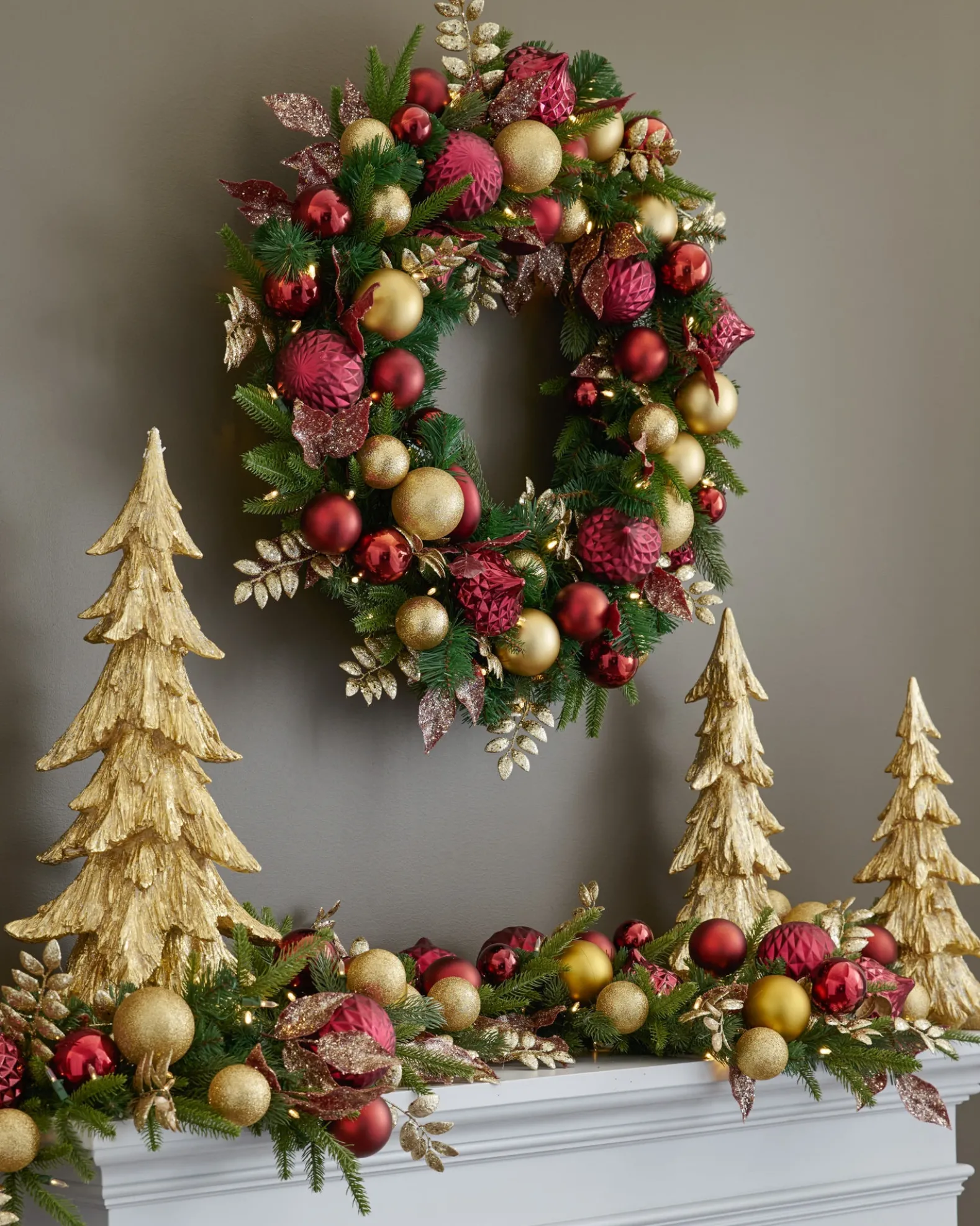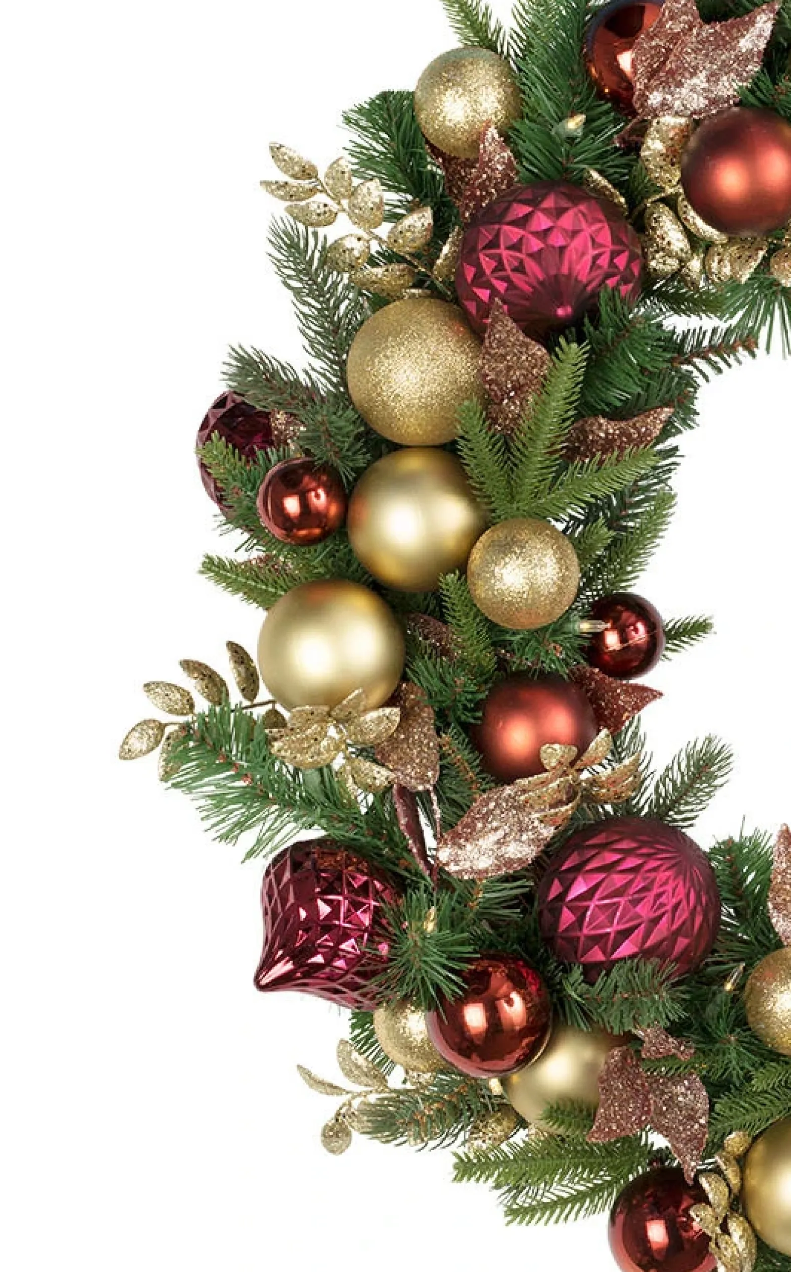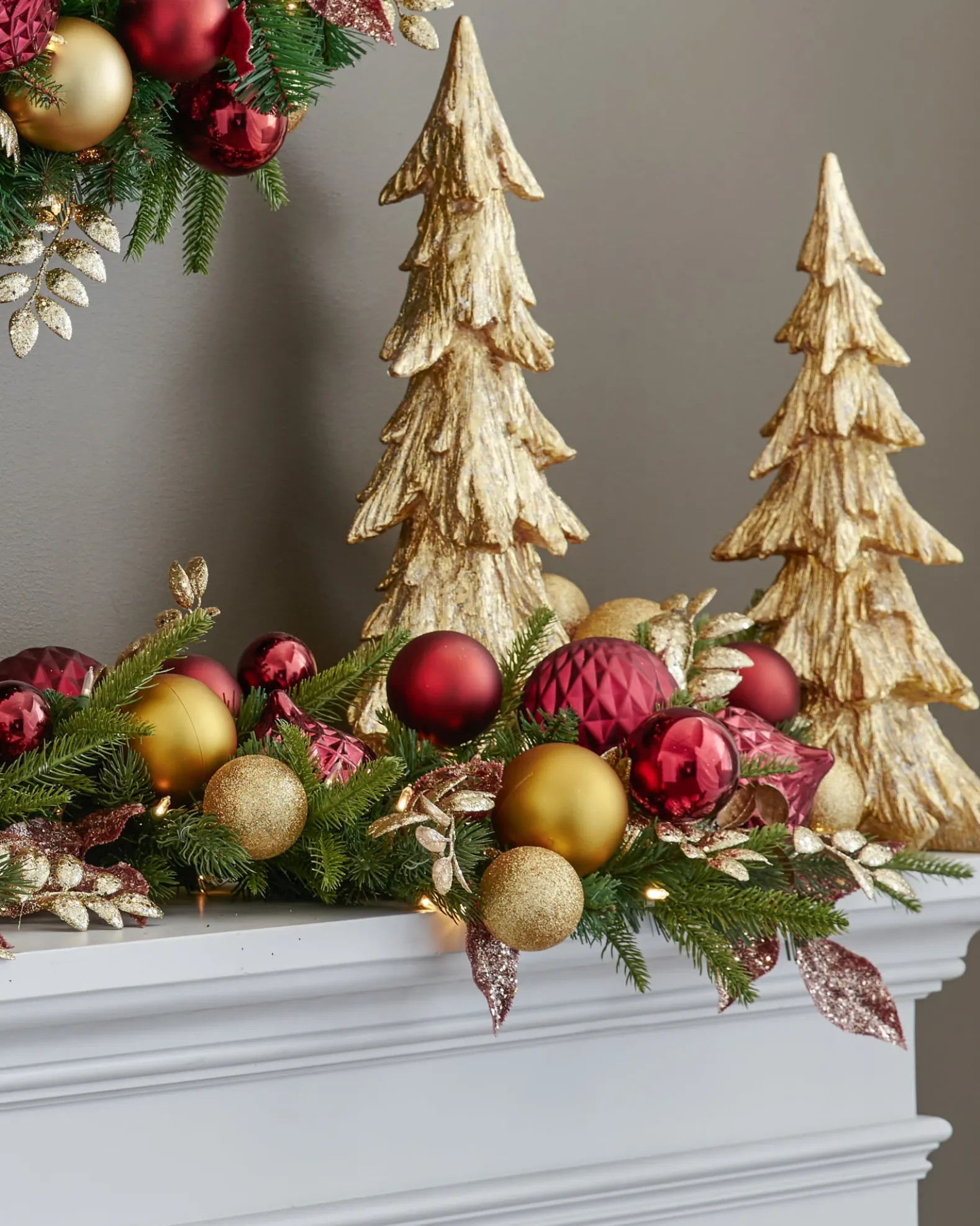 Assorted textures and colors make our holiday foliage a joyful celebration of the Christmas spirit. This Balsam Hill exclusive collection features classic green foliage decorated with burgundy and gold shatter-resistant ornaments and metallic leaf embellishments.