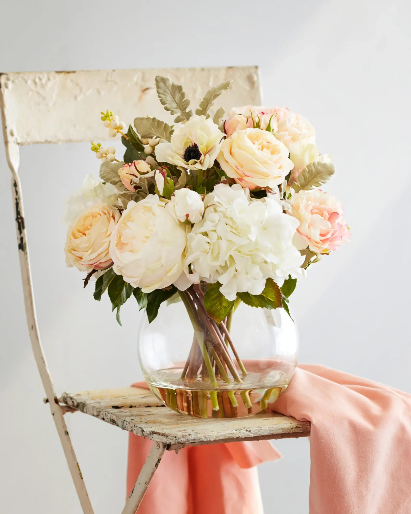 Recreate the charming calm of a garden full of beautiful blooms and berries. This arrangement instantly refreshes your spaces anywhere you set them.