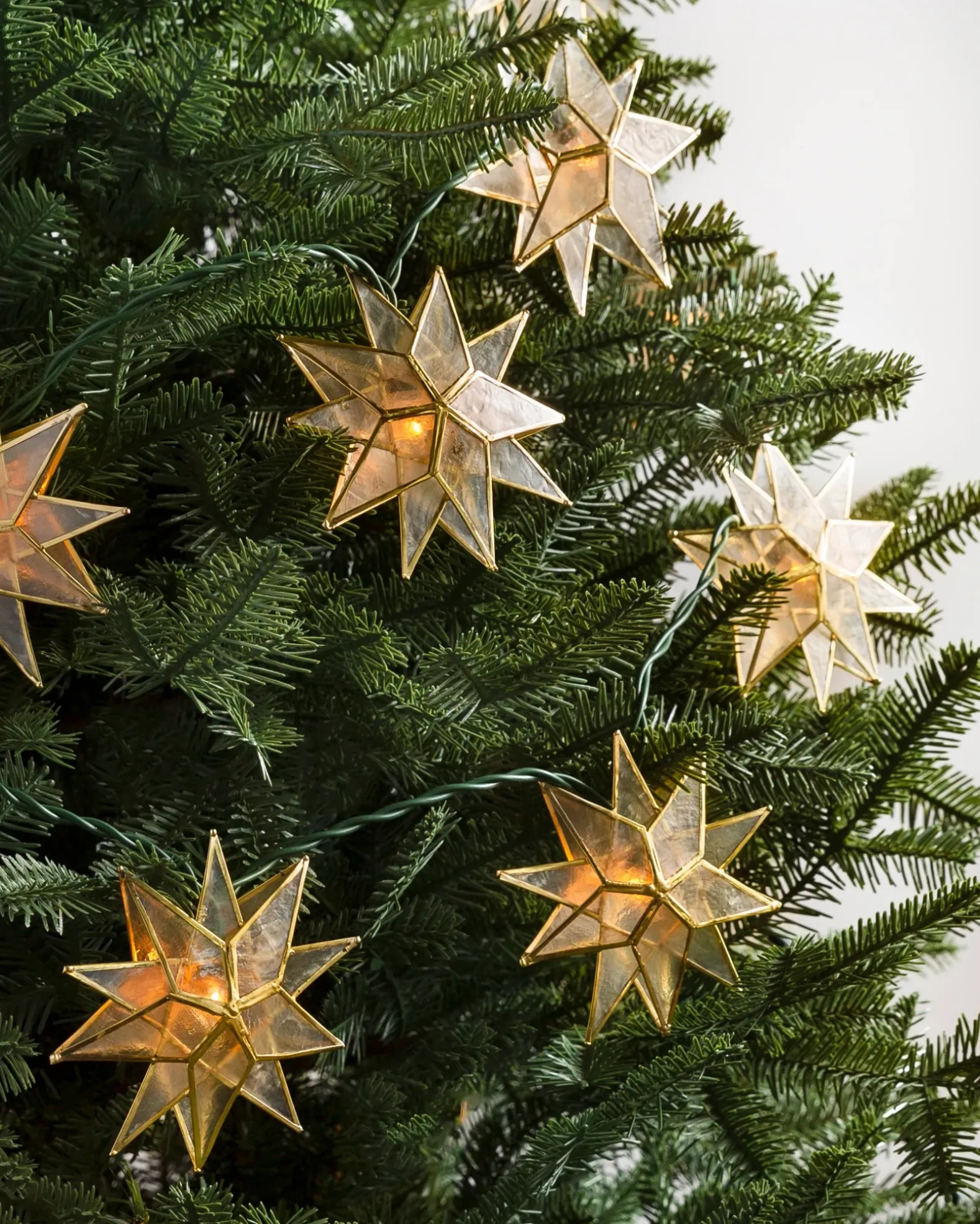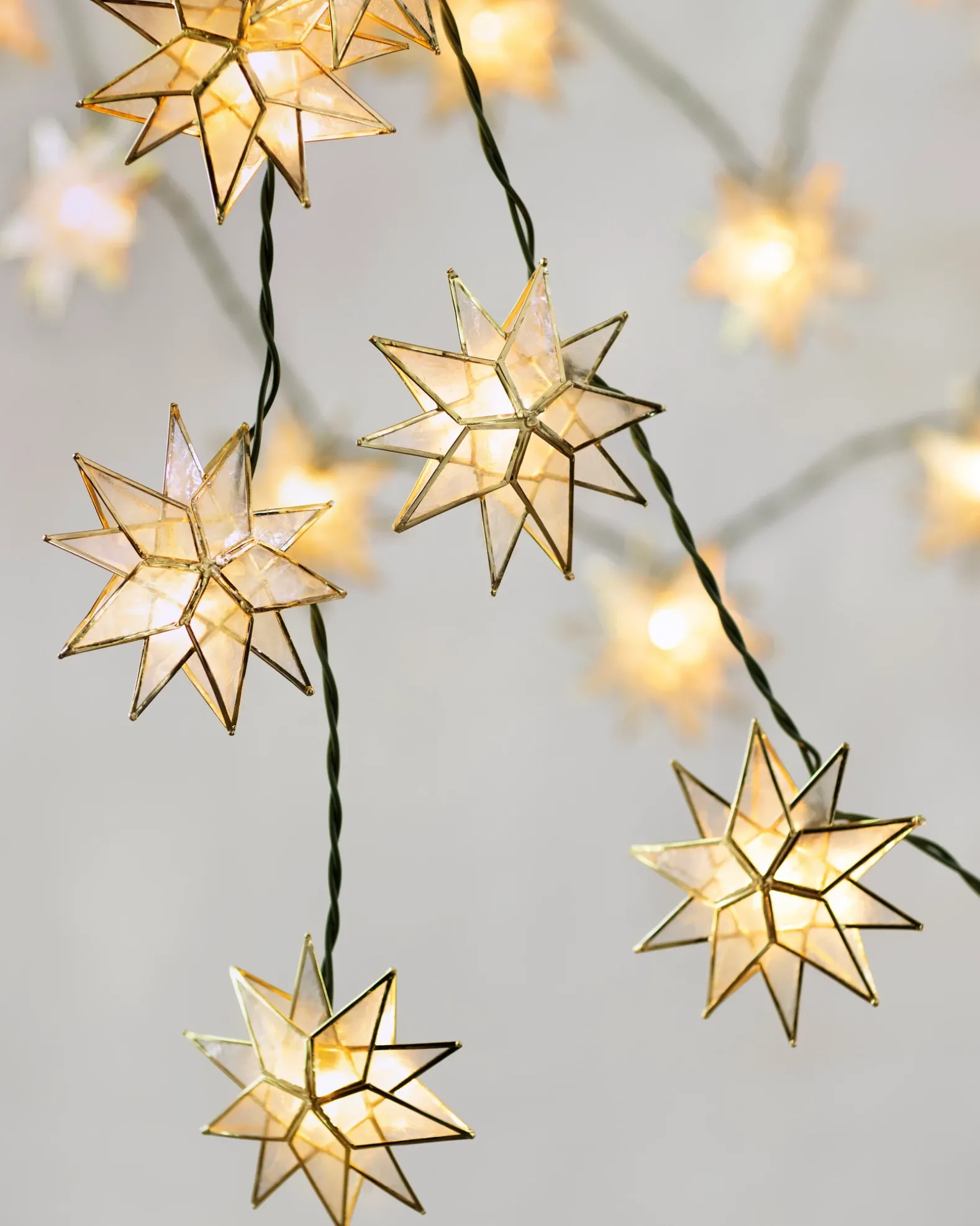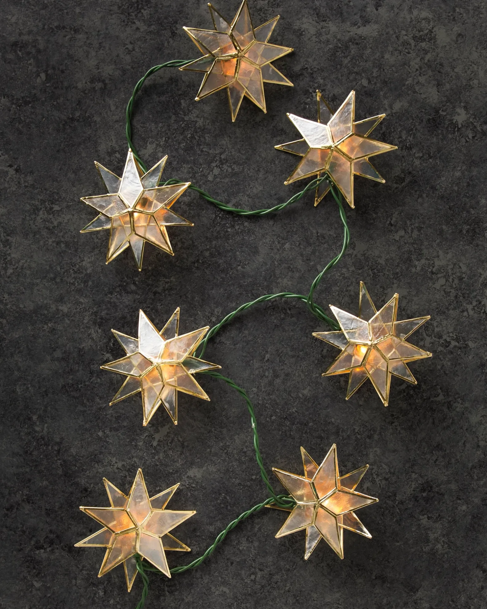 Light up your holiday display with the iridescent glow of capiz stars. Drape this elegant garland on the tree or mantel to add an enchanting glow to your Christmas evenings.