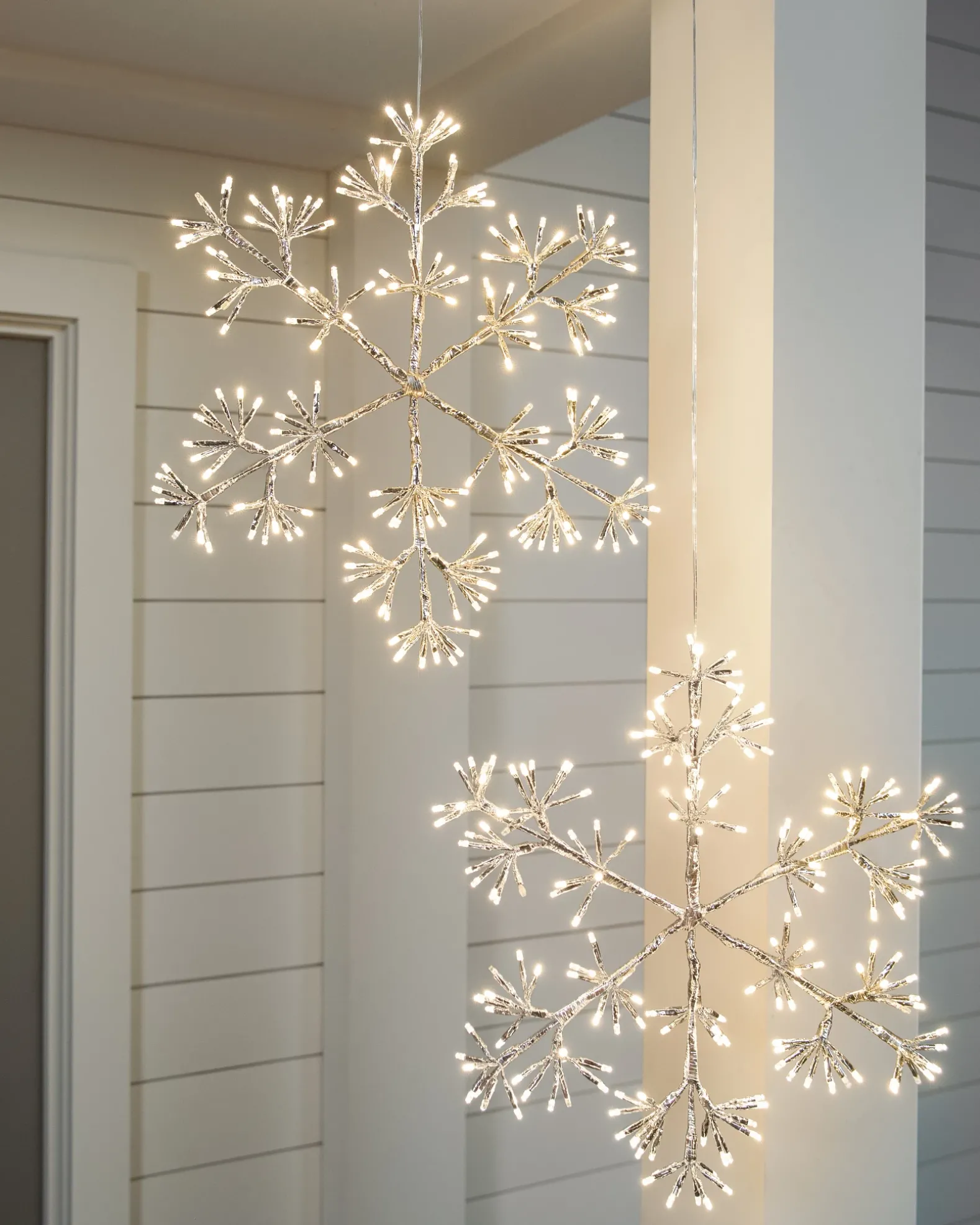 Brighten up long winter nights with a dazzling snowflake display. Hang by the windows or from the ceiling as a brilliant finishing touch to your Christmas decorating.