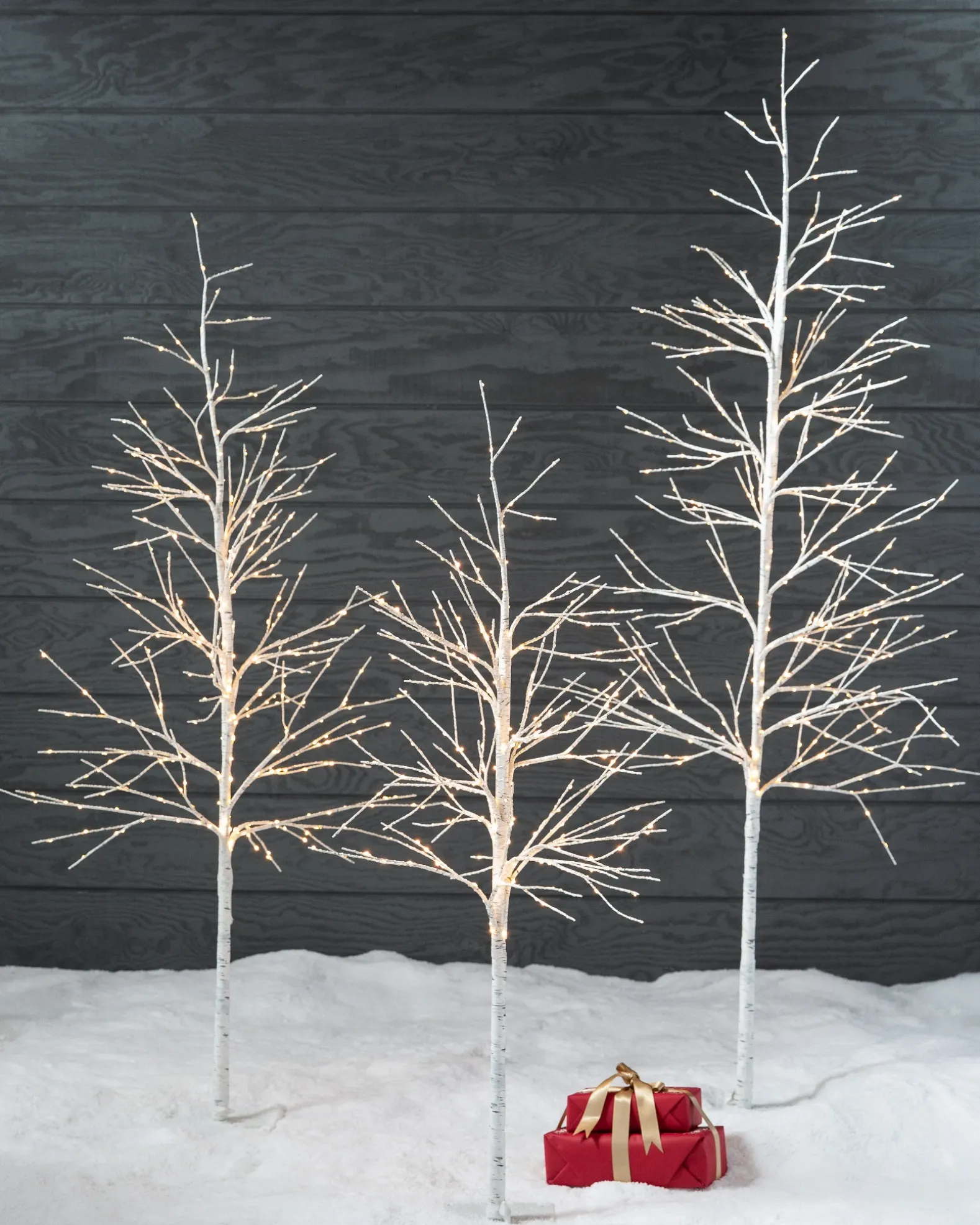 Bring the enchanting beauty of natural birch trees into your home with our Lit Winter Birch LED Trees. Whether displayed individually or grouped together, these illuminated artificial trees create a stunning wintry scene that infuses any space with a warm, festive glow. Perfect for both indoor and covered outdoor use, our lighted LED trees are designed to add a touch of magic to your holiday décor and beyond. Each tree is meticulously crafted with durable PVC and metal, ensuring longevity and elegance for years to come.