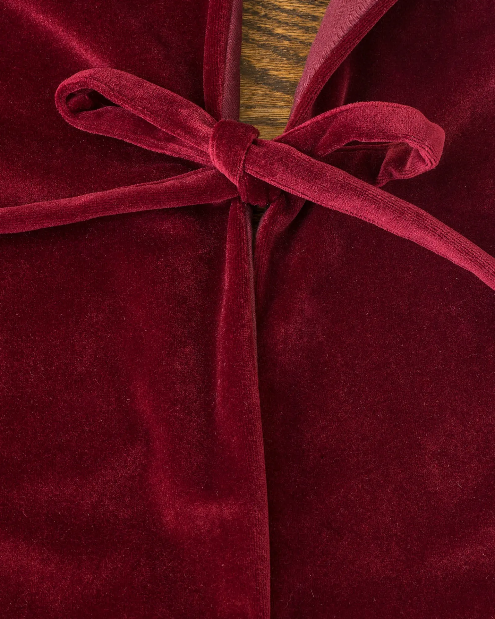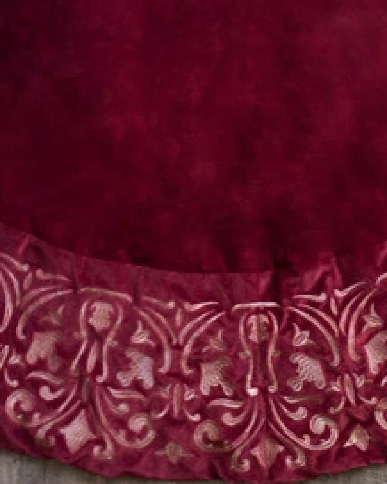 Inspired by the grandeur of the Victorian era, our Luxe Embroidered Velvet Tree Skirt is a bold complement to your Christmas tree. From its dramatic brocade-like design to the plush ribbon closure, our embroidered Christmas tree skirt sets the stage for a stylish season.