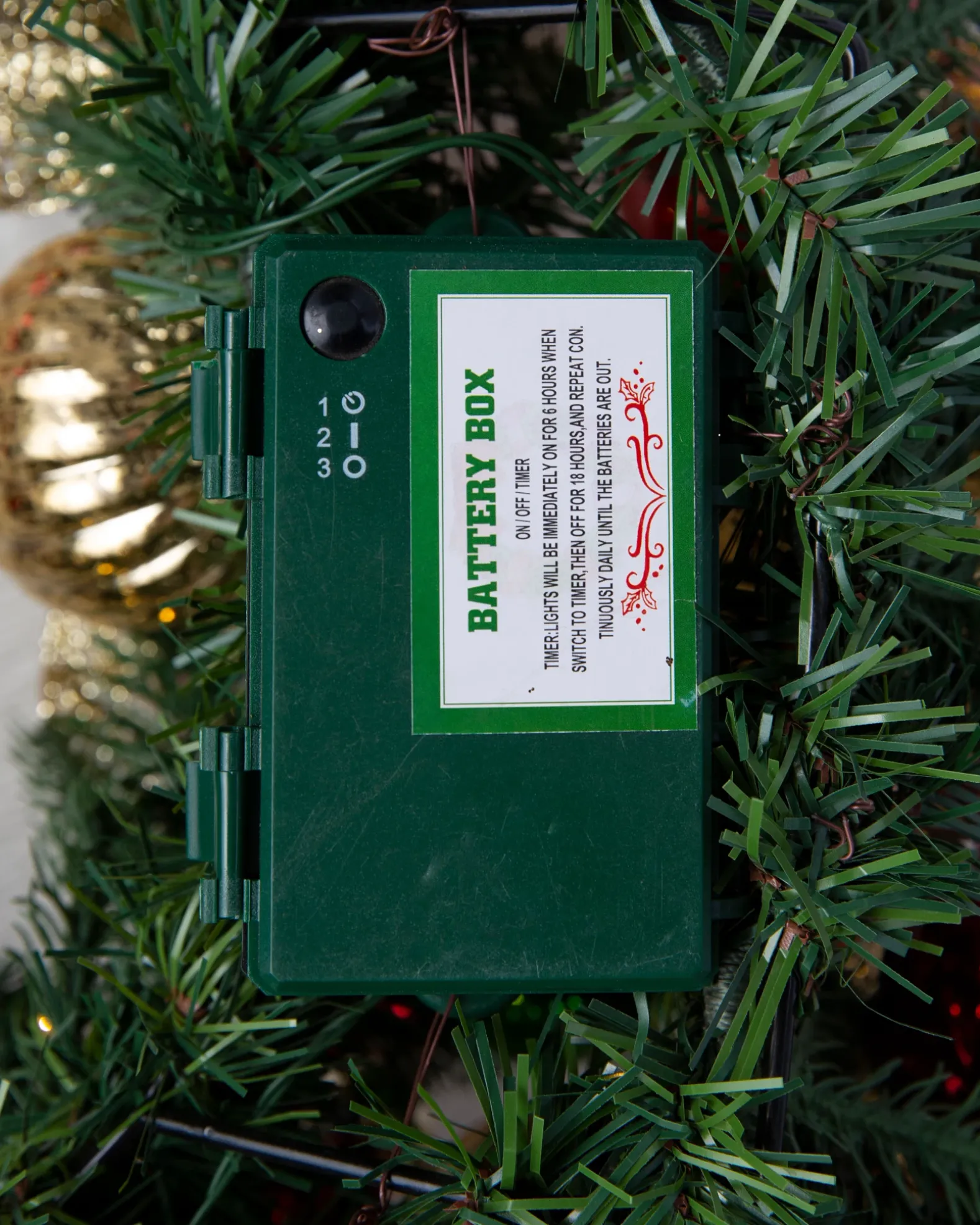 - Battery-operated lights include a built-in timer; 6 hours on, 18 hours off