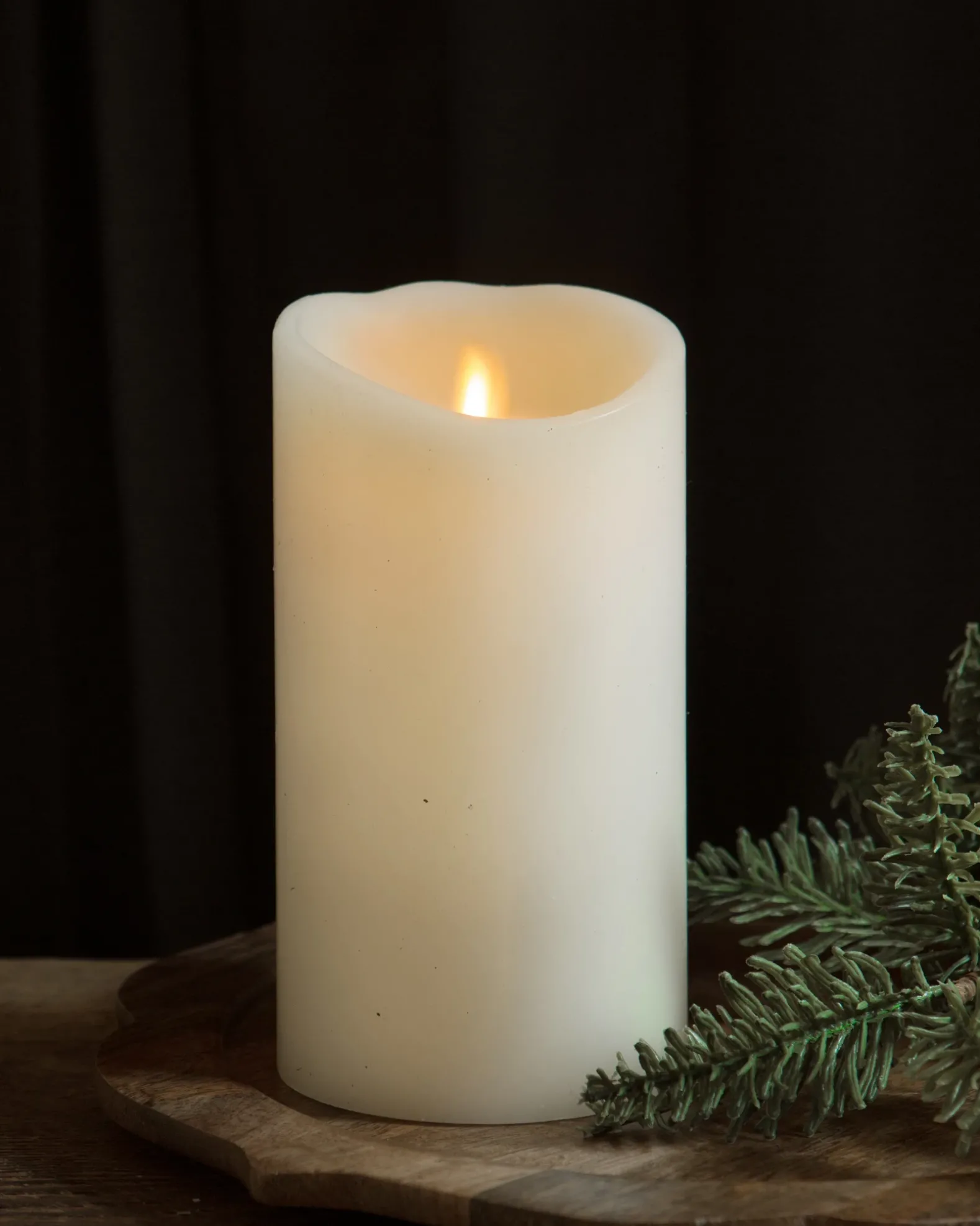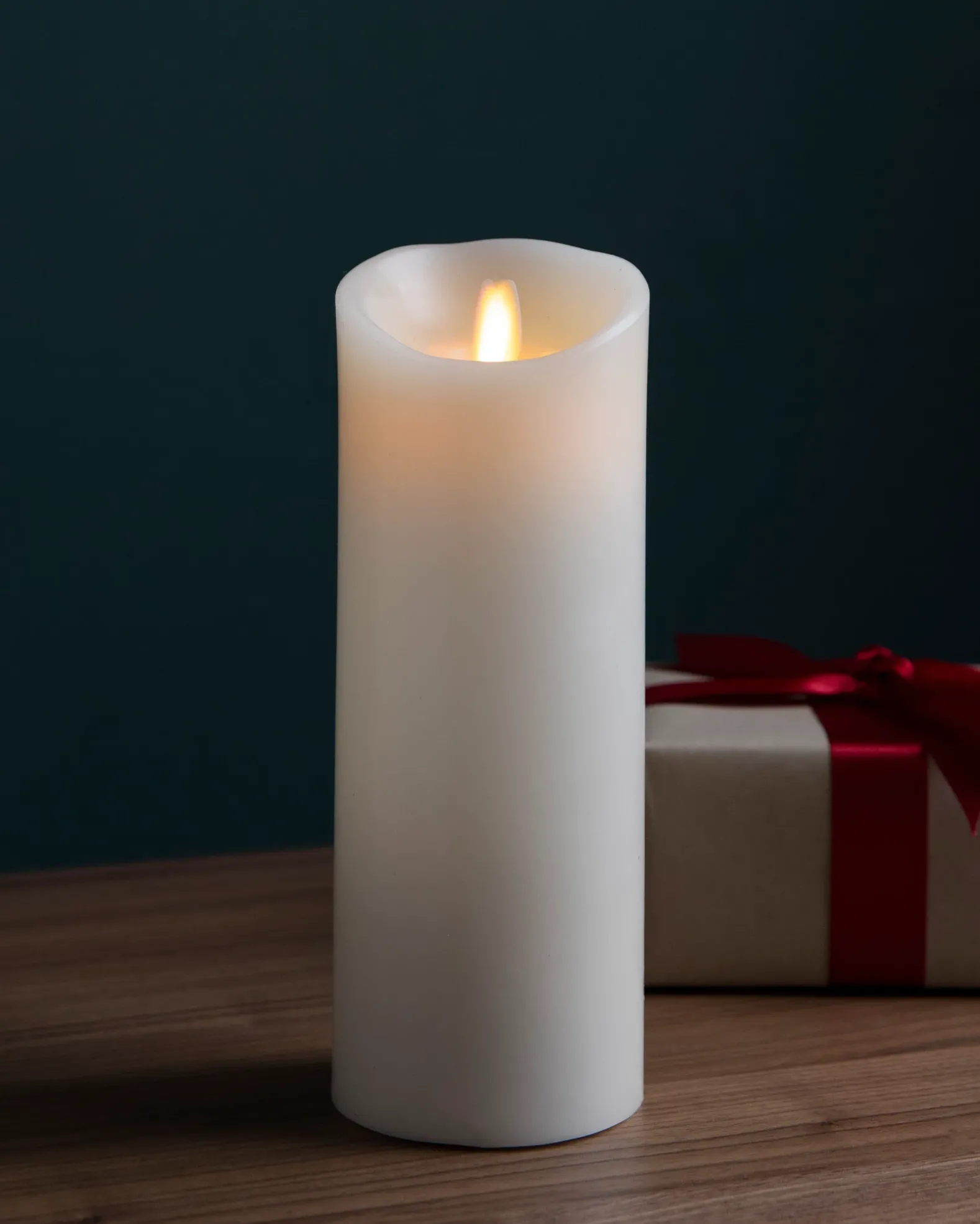 Miracle Flame candles feature an electromagnet and internal LED bulb to create the illusion of a dancing flame. Each faux candle is hand-poured from paraffin wax and designed with slightly melted edges for a natural appearance and texture, making them virtually indistinguishable from real candles. Powered by larger batteries for longer use, all Miracle Flame candles come complete with a multifunctional remote control for maximum convenience.