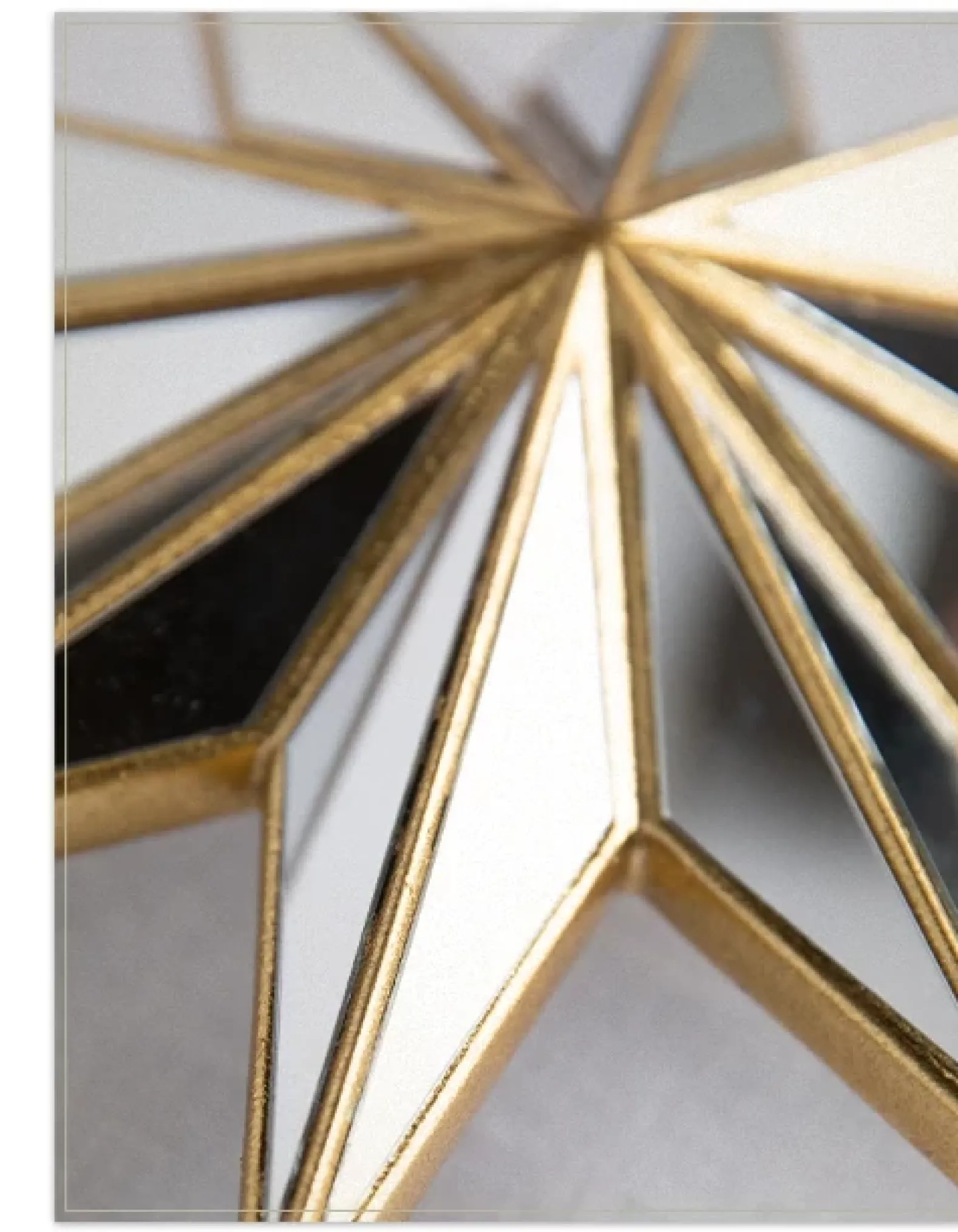 - Handcrafted with geometric glass mirrors set on an iron frame