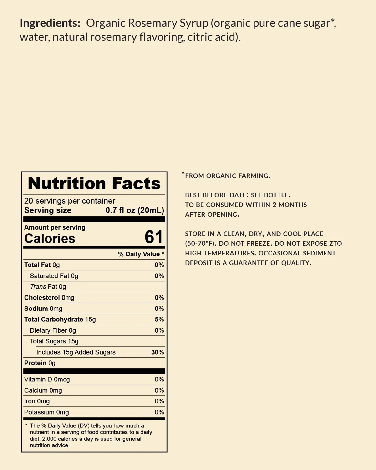 - 13.5 oz. Raw Organic Rosemary Simple Syrup