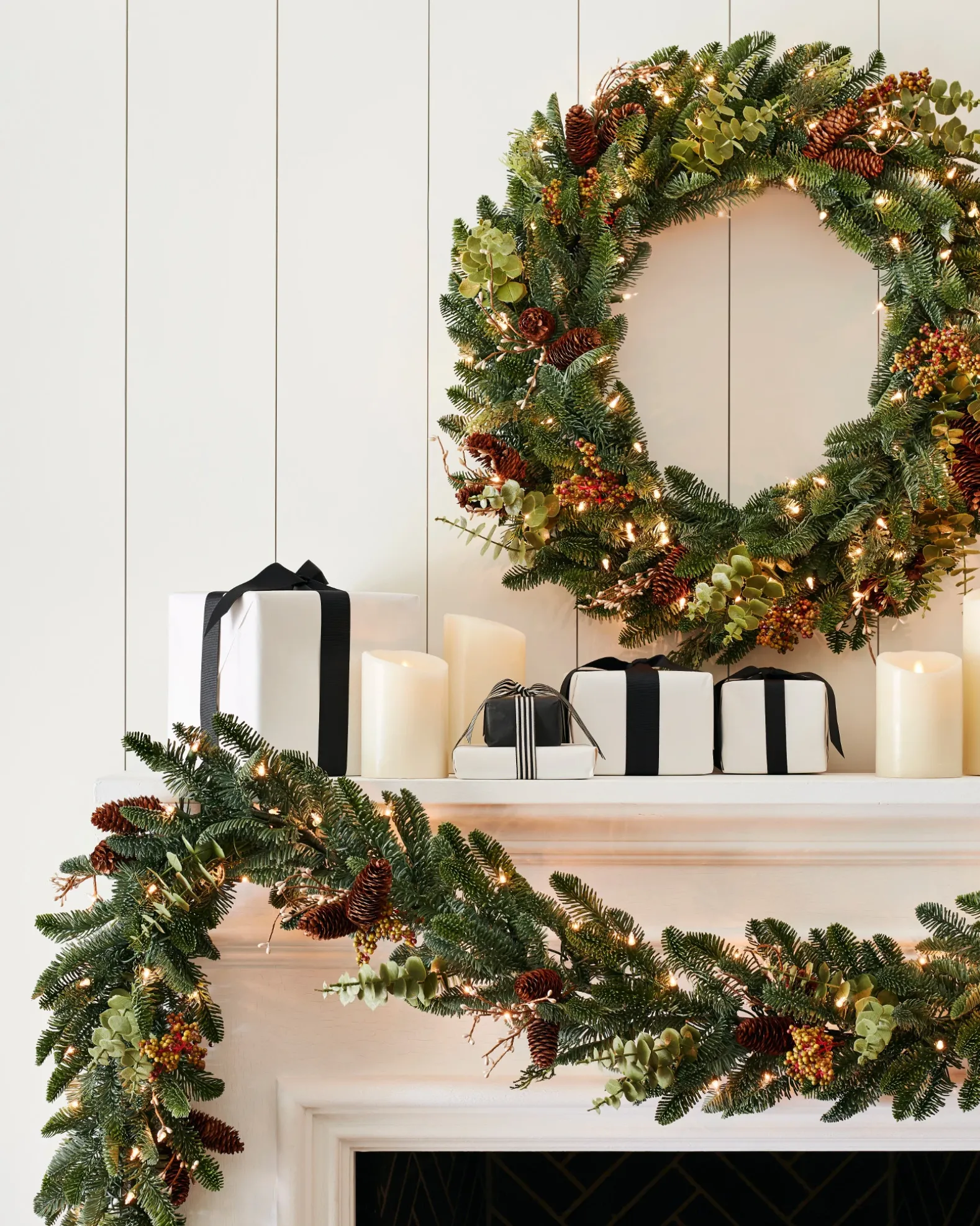 Create picturesque gatherings with refreshing evergreens. Lifelike foliage adorned with natural elements add wintry charm to your holiday celebrations.