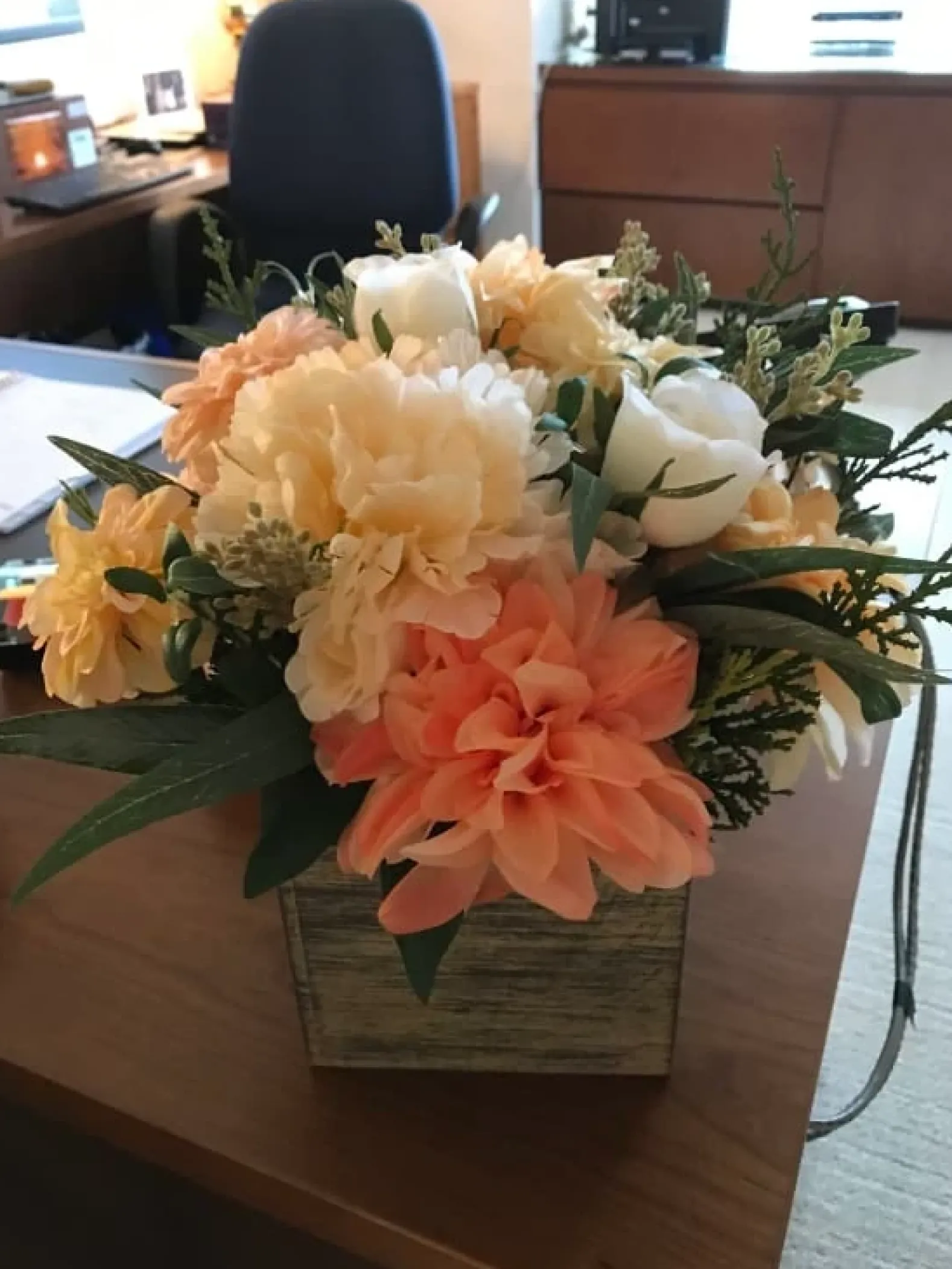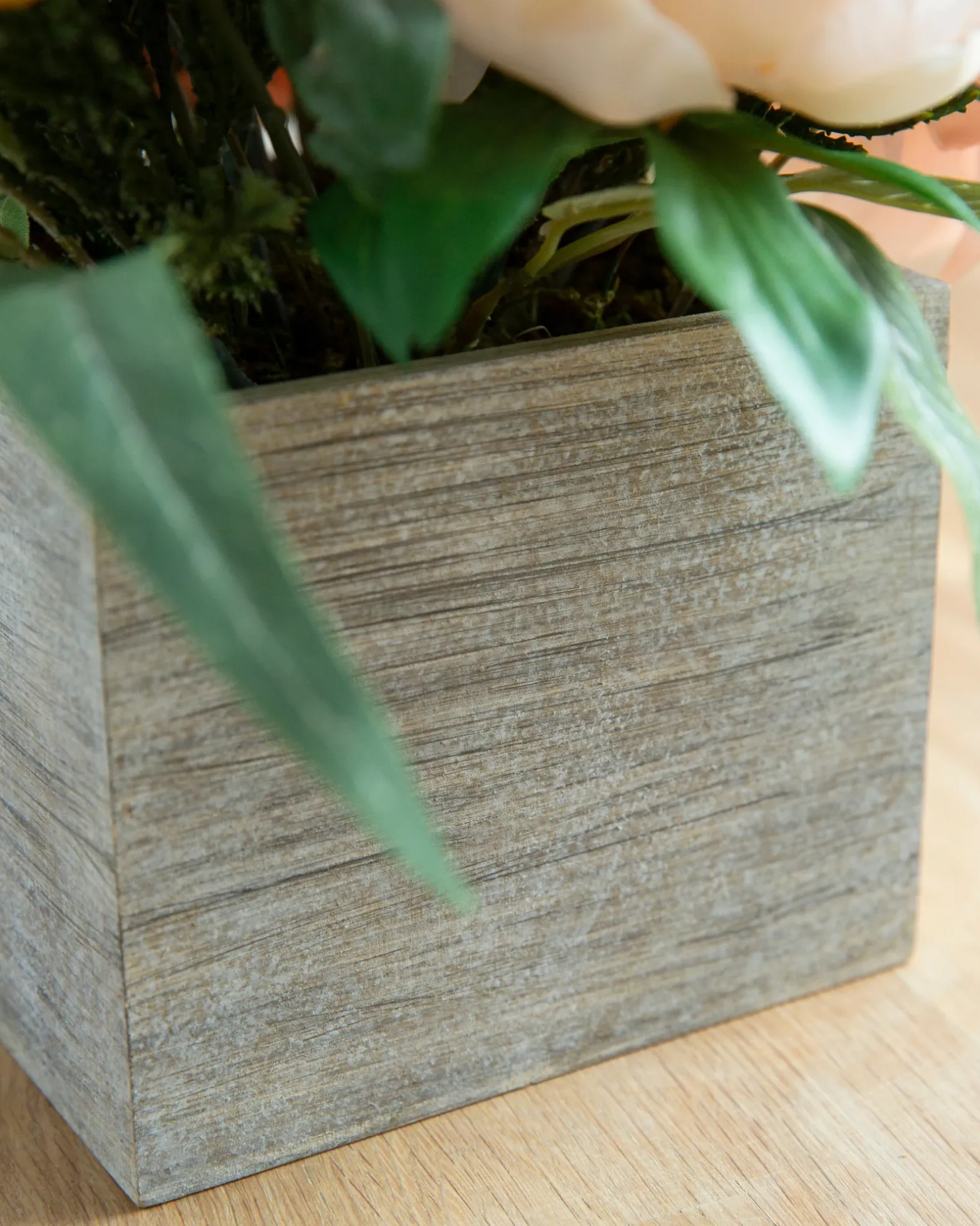 - Set in a wooden planter measuring 5.75″ long x 5.75″ wide x 4.75″ high