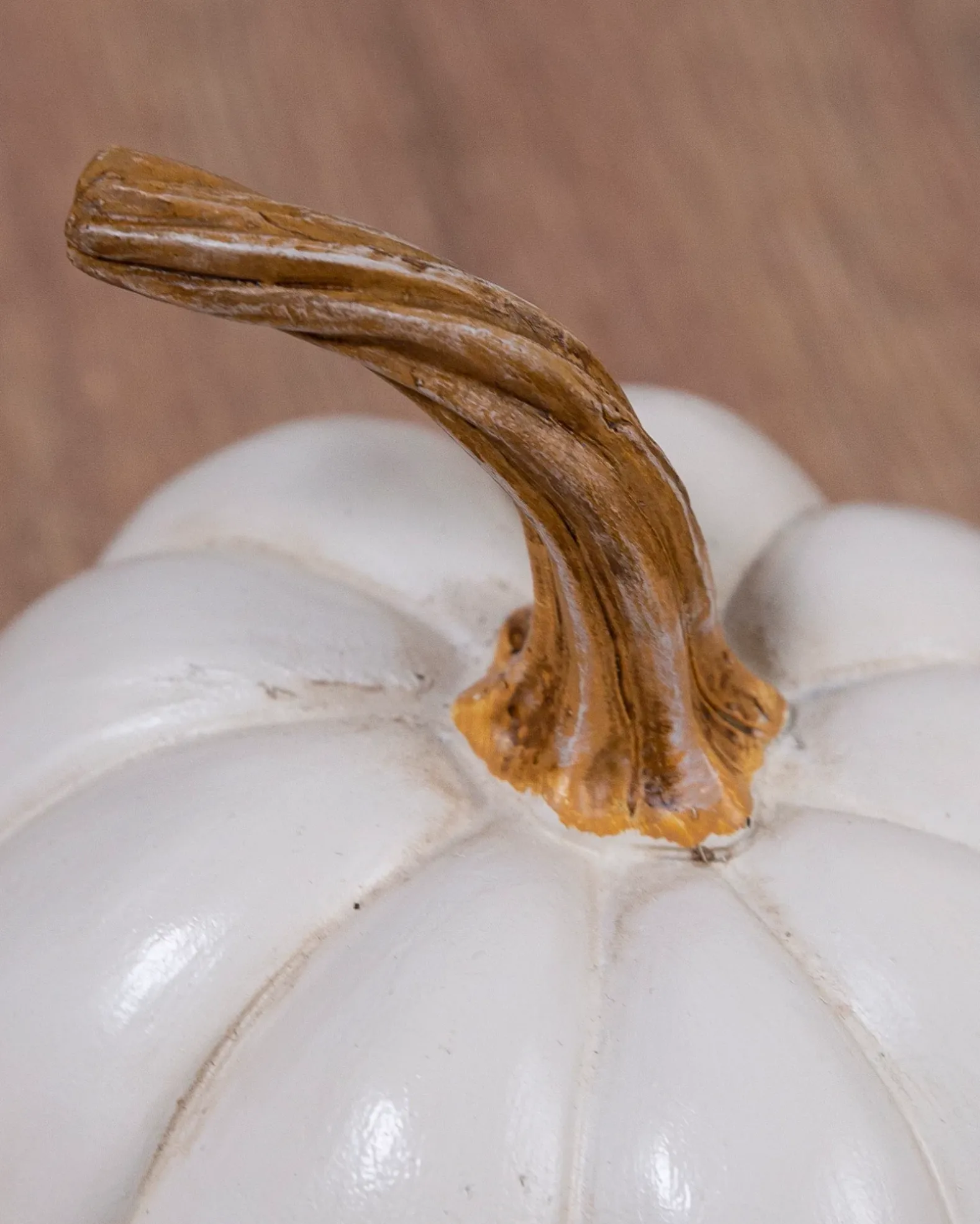 - White pumpkin measures 9.5″ long x 9″ wide x 7″ high