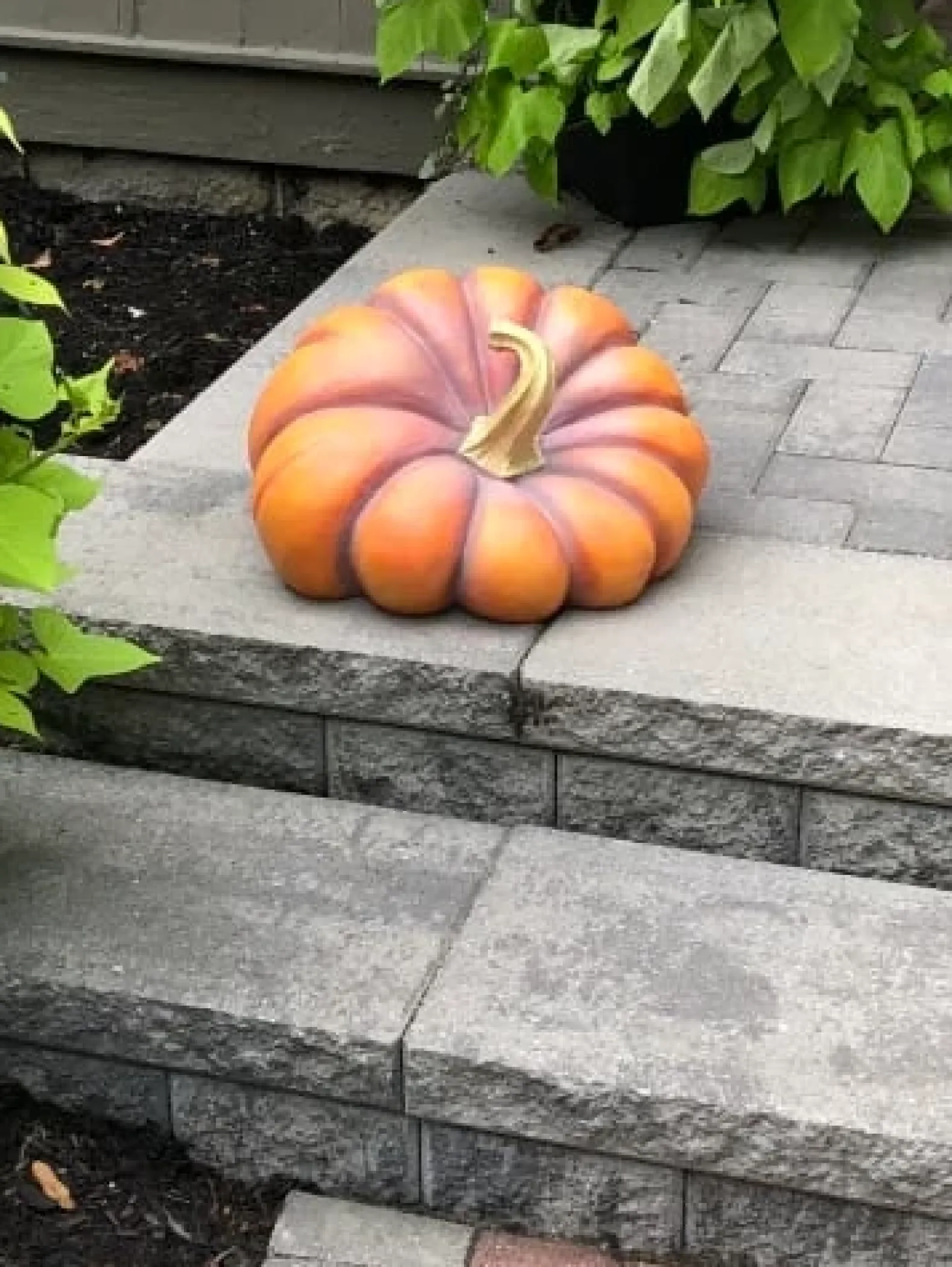 - Large pumpkin measures 15.75″ long x 13″ wide x 10.5″ high