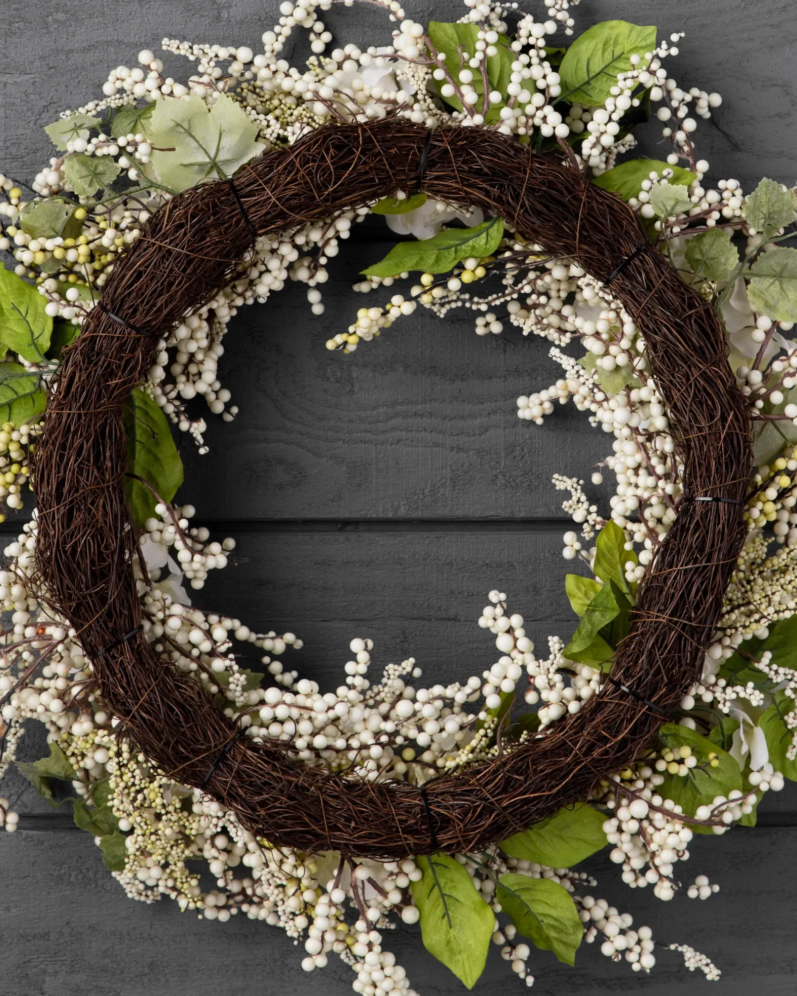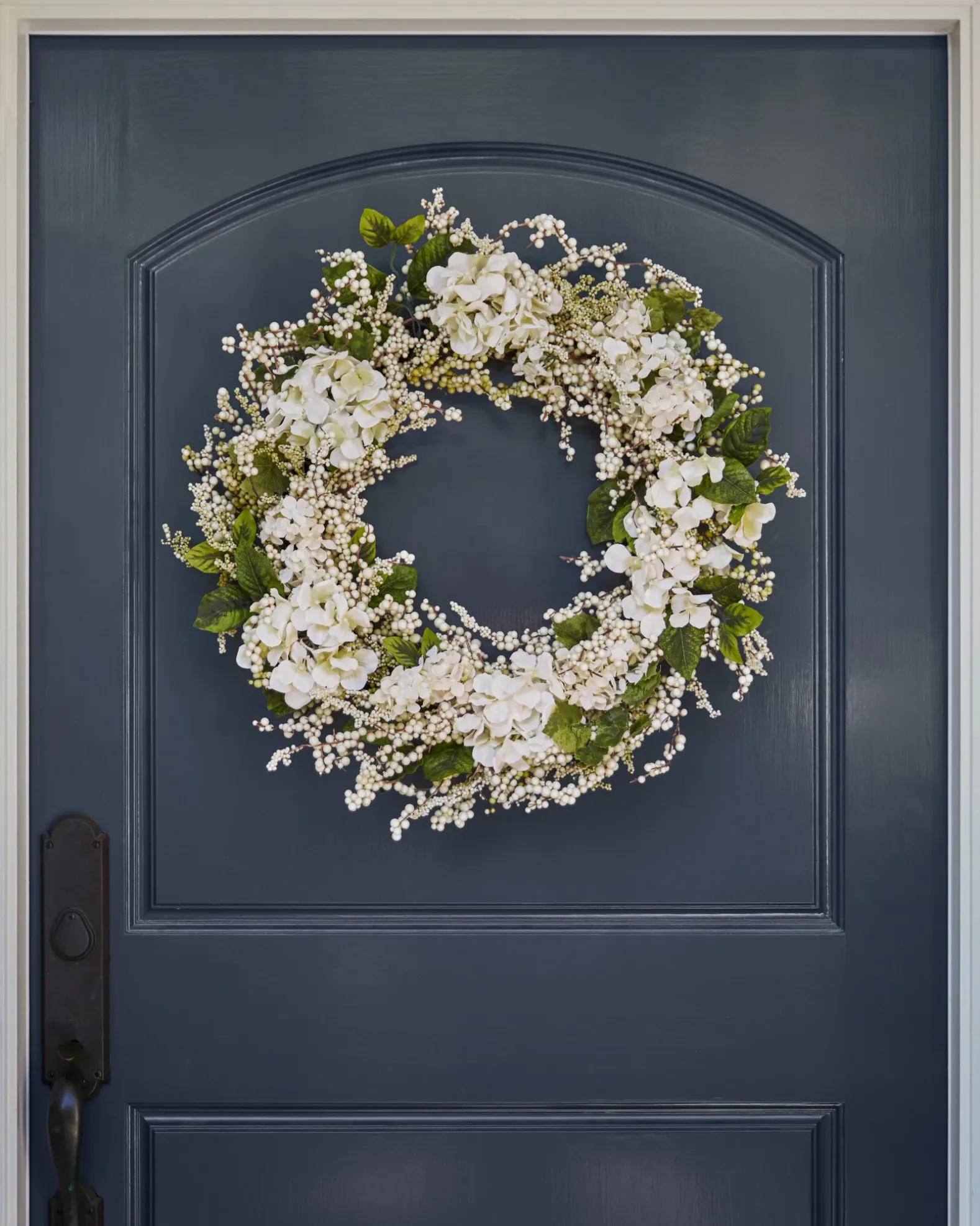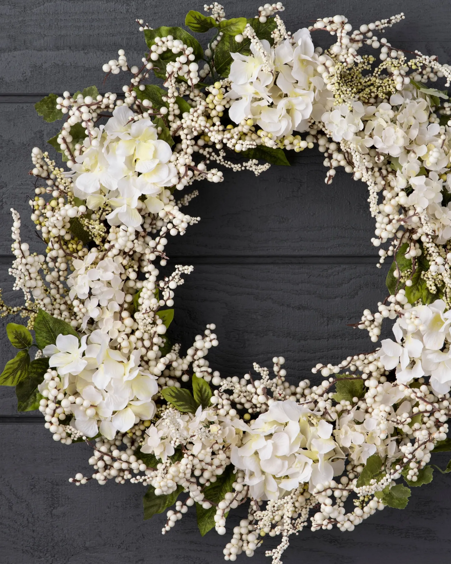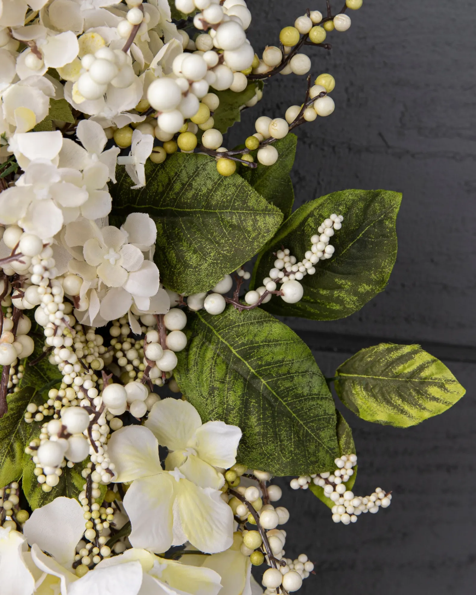 - All products in this collection feature an array of faux flowers, including: hydrangeas, berries, and assorted leaves