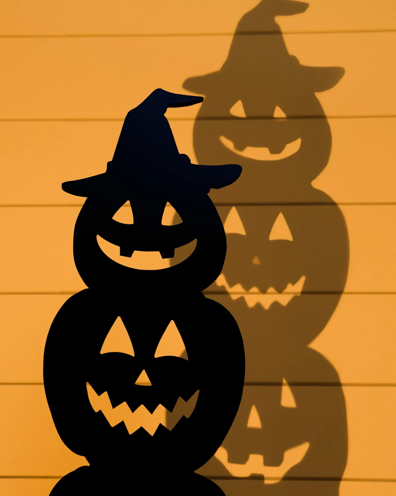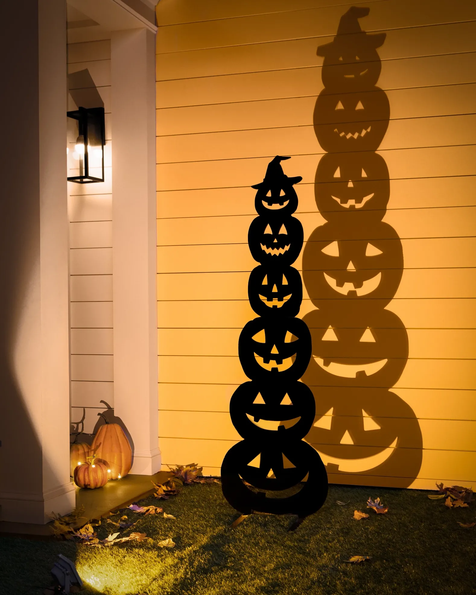 - Outdoor Illuminated Stacked Jack-o’-Lanterns Silhouette