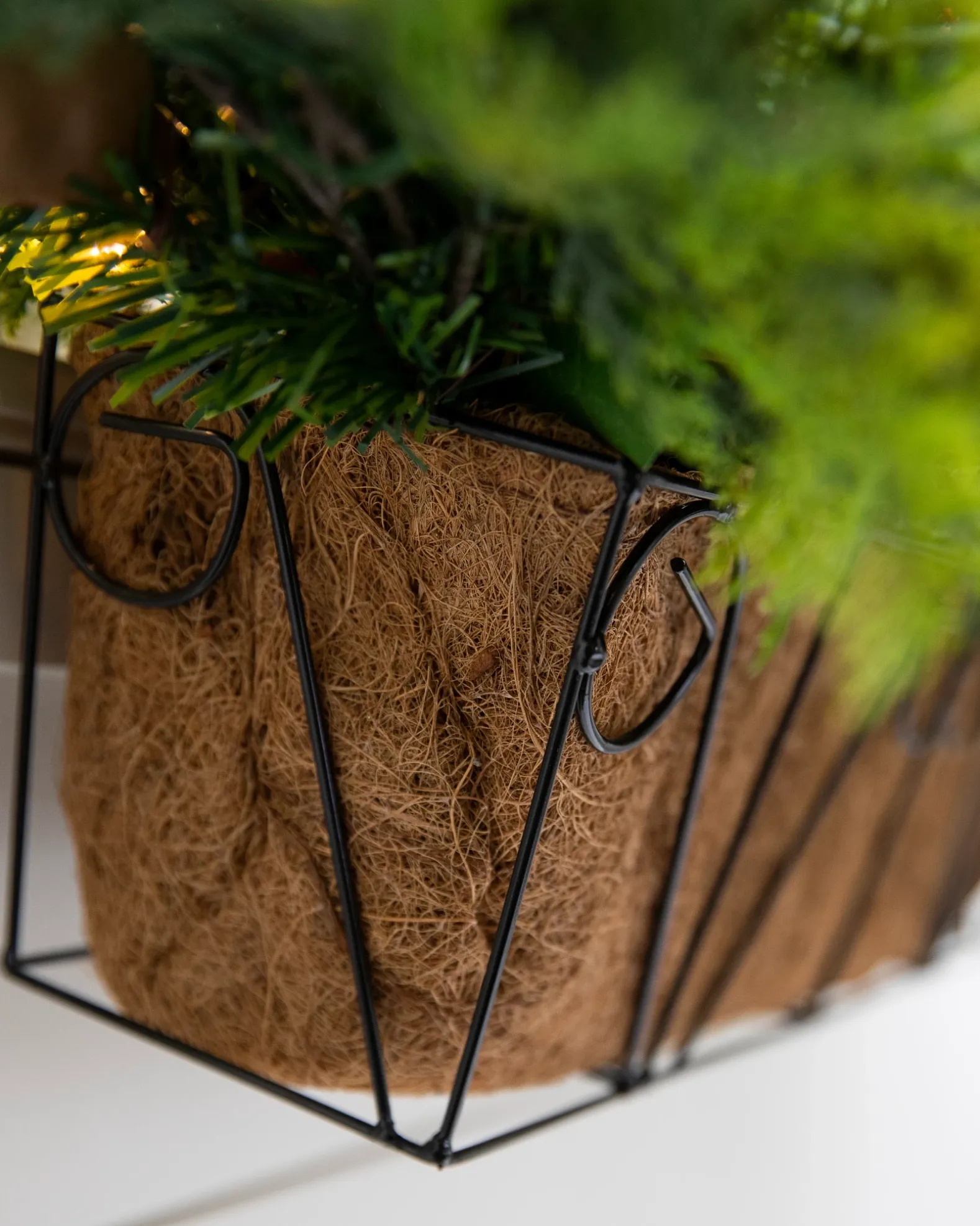 - Set with coconut coir in a iron frame box measuring 18” long x 4” wide x 5” high