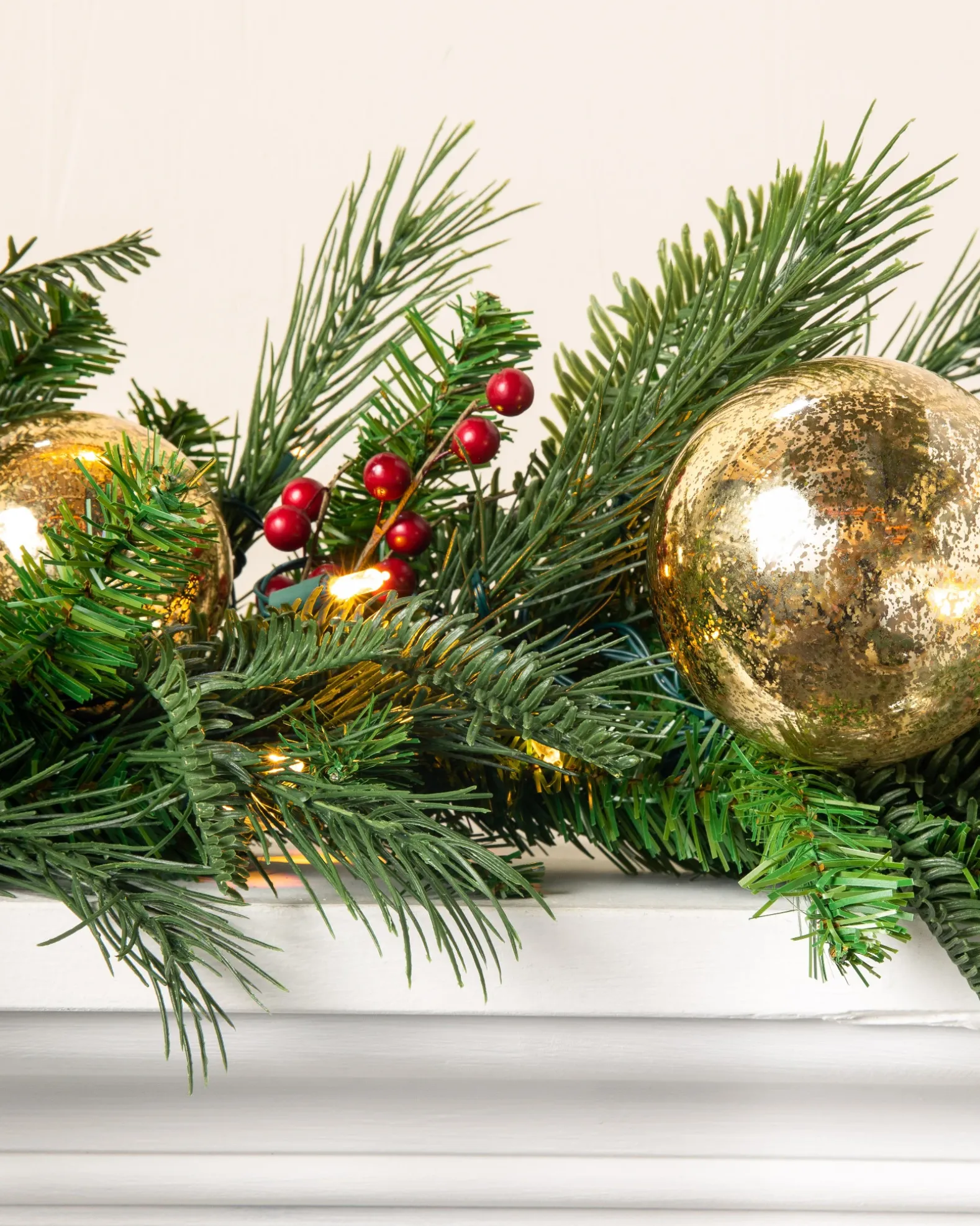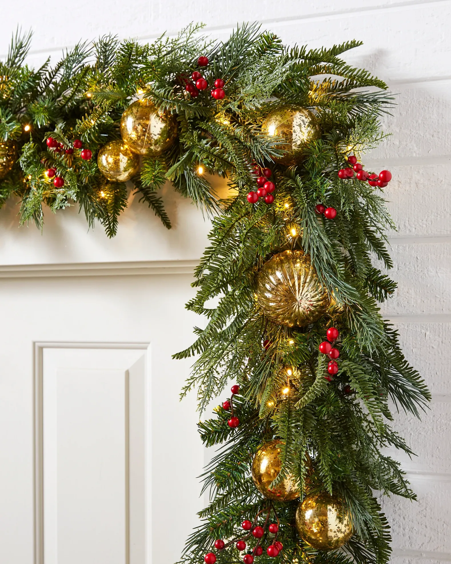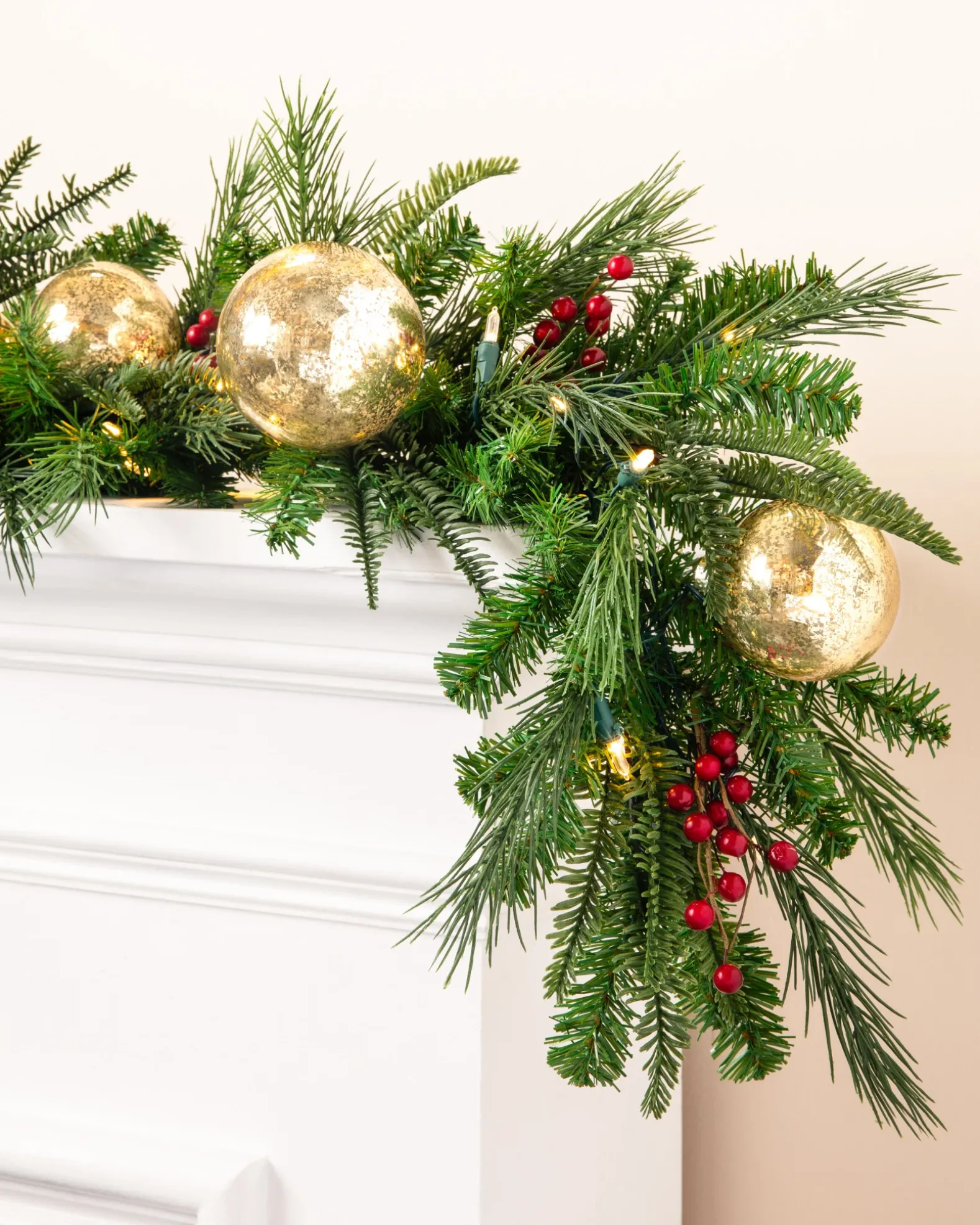 Add extra cheer to your home with charming foliage. Red berries and metallic ornaments make your holiday décor extra vibrant.
