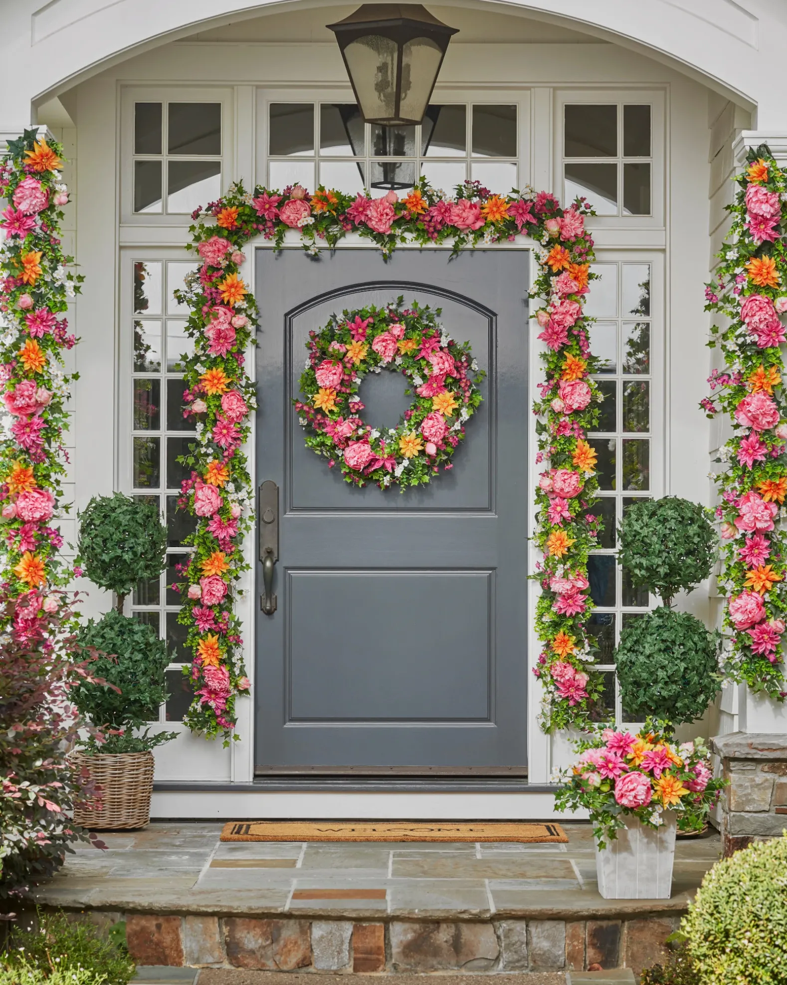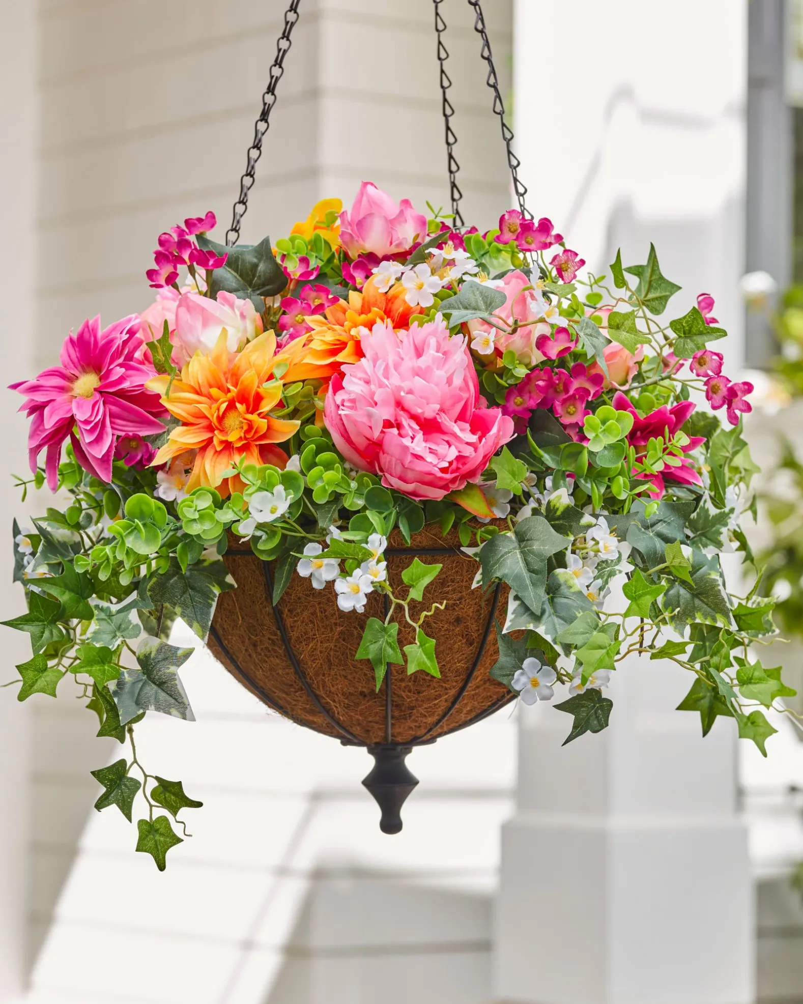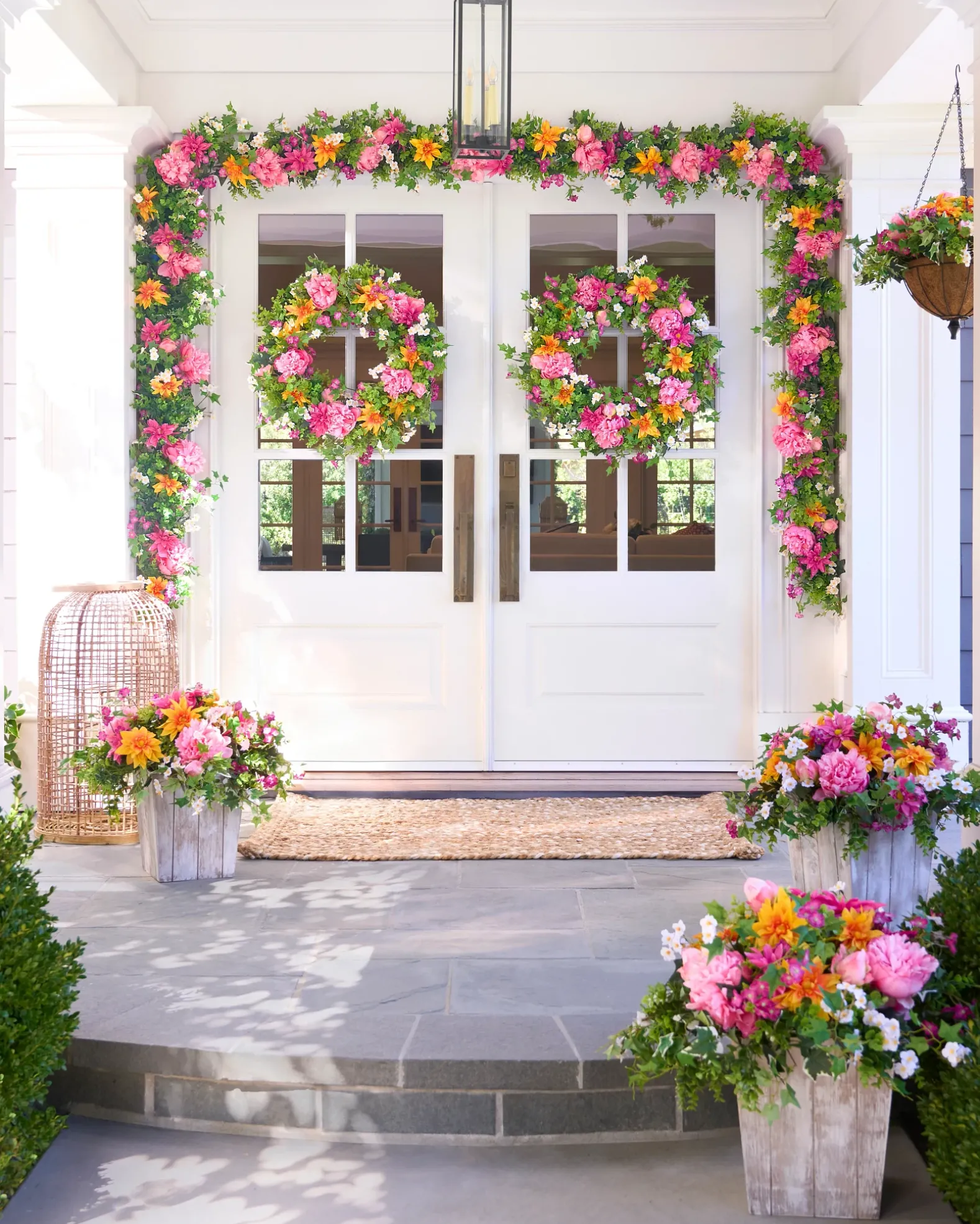 Make the season last forever with an outdoor-safe floral collection. Vibrant springtime blooms in shades of pink, magenta, and orange paint a delightful scene across your spaces.