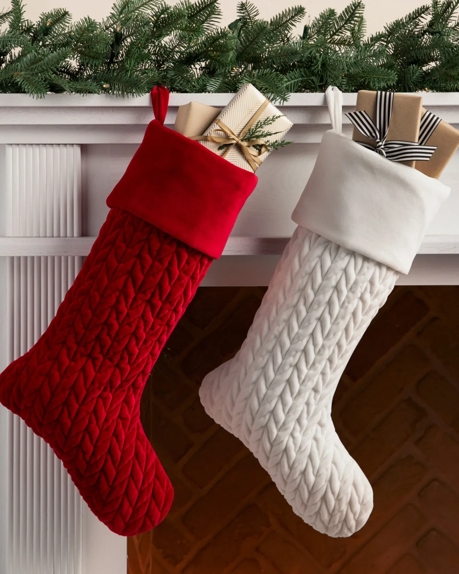 Wake up to plush Christmas stockings hung by the chimney with care. Their soft, textured look adds a warm touch to your gift-giving traditions.