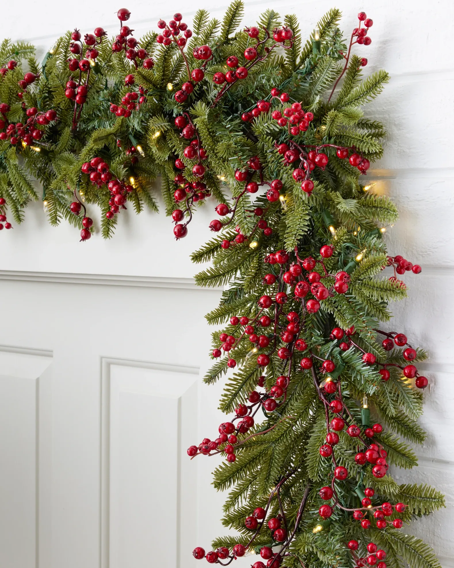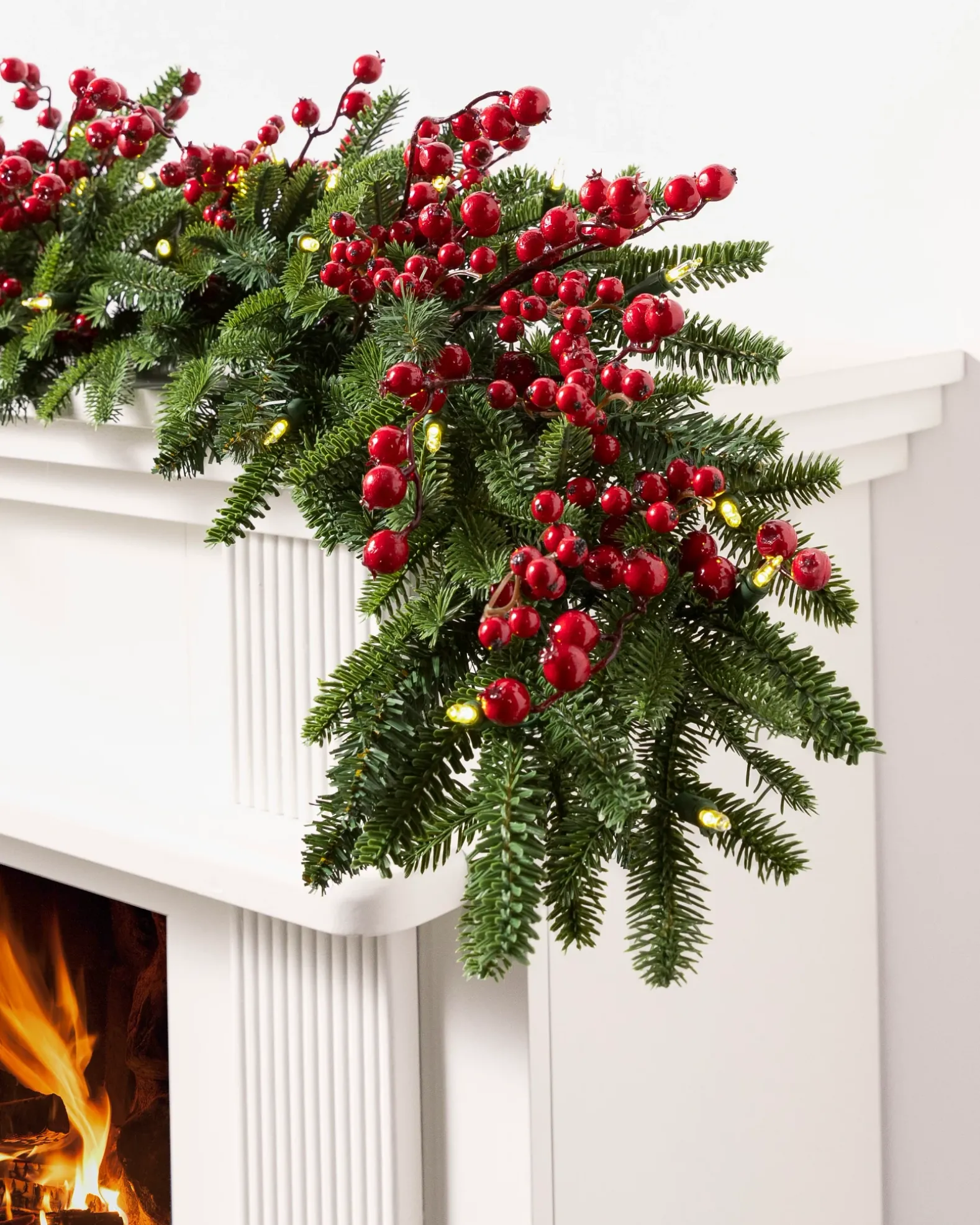 Create festive displays filled with timeless Christmas color and cheer. Lush green foliage and bursts of crimson berries add a lively touch to your mantel, staircase, and front door.