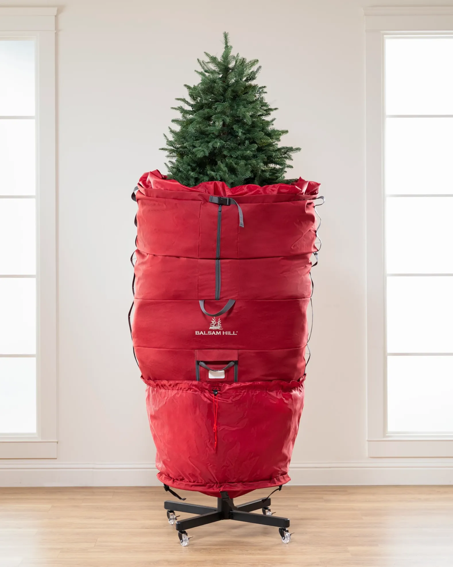 Easily transport and store your Christmas tree season after season. Crafted from durable materials, this bag comes in three sizes and features a rolling stand to simplify the storage process. Just remove all decorations from your tree, detach and place the top tree section in a special compartment, and pull up the collapsible bag up over the tree.