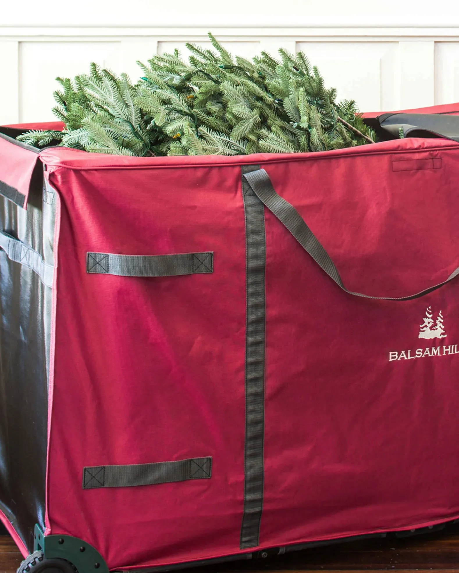 Store and protect your cherished Christmas decorations for many seasons to come. With its spacious interior and wide access opening, this versatile storage bag can accommodate a large artificial tree, or a smaller tree along with wreaths and garlands. The inner compression system helps keep your foliage in place, while sturdy wheels allow for easy transport in and around your home.
