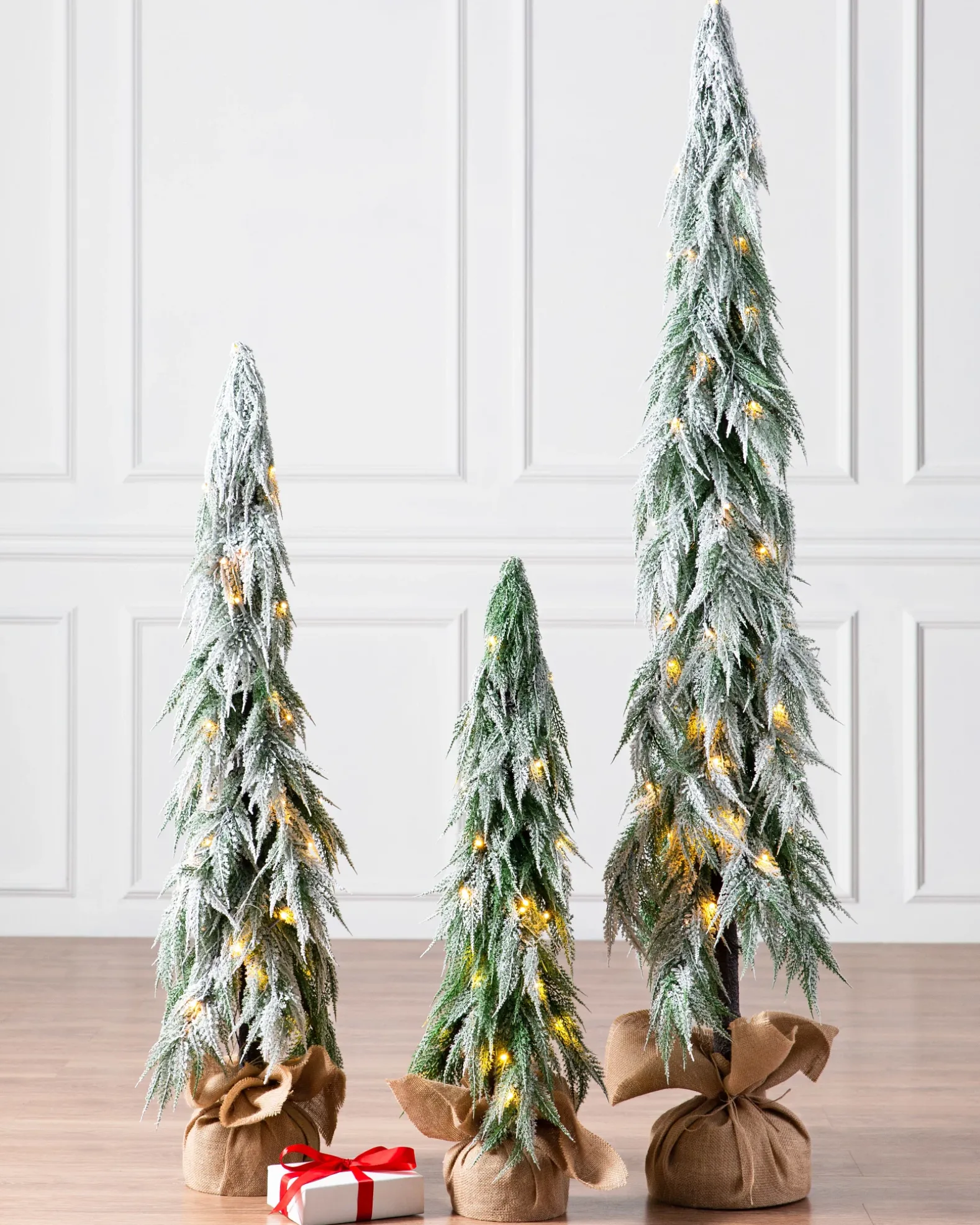 Create magical holiday moments with these small, snow-laden pre-lit artificial christmas trees. Set in groups to transform your favorite spaces into a whimsical winter grove. These are the best decorations to bring holiday cheer to your home.