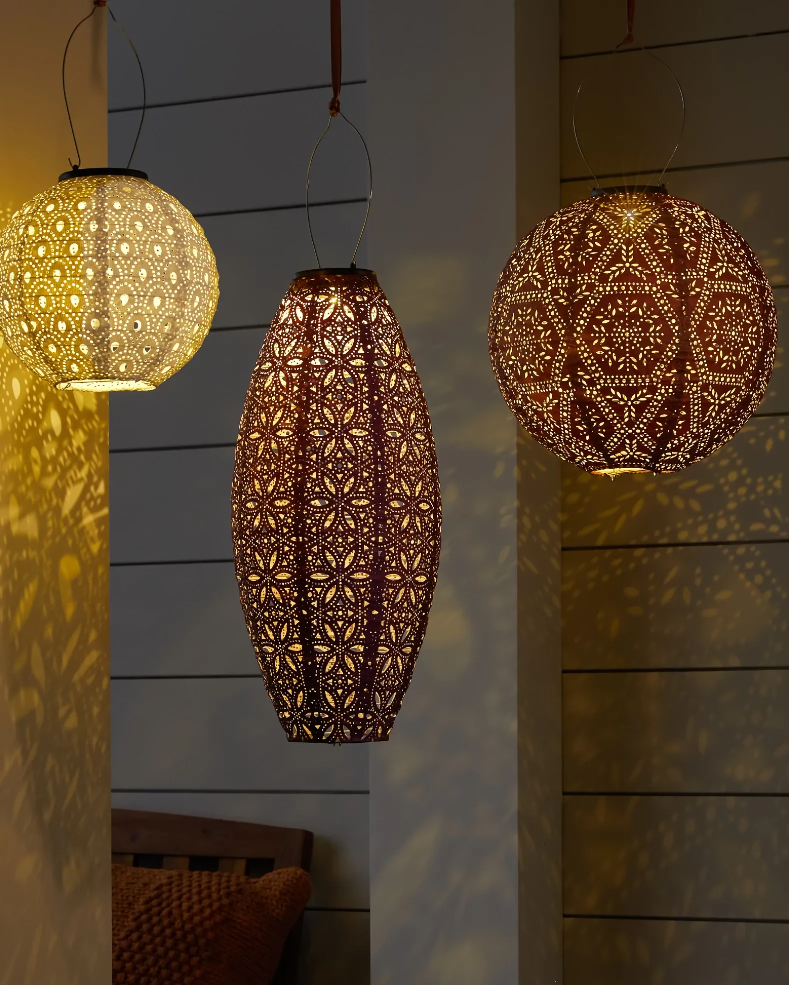Cast intricate patterns of light and shadow with beautiful boho-inspired lanterns. Hang from walls, trees, or porch railings for a year-round flair.