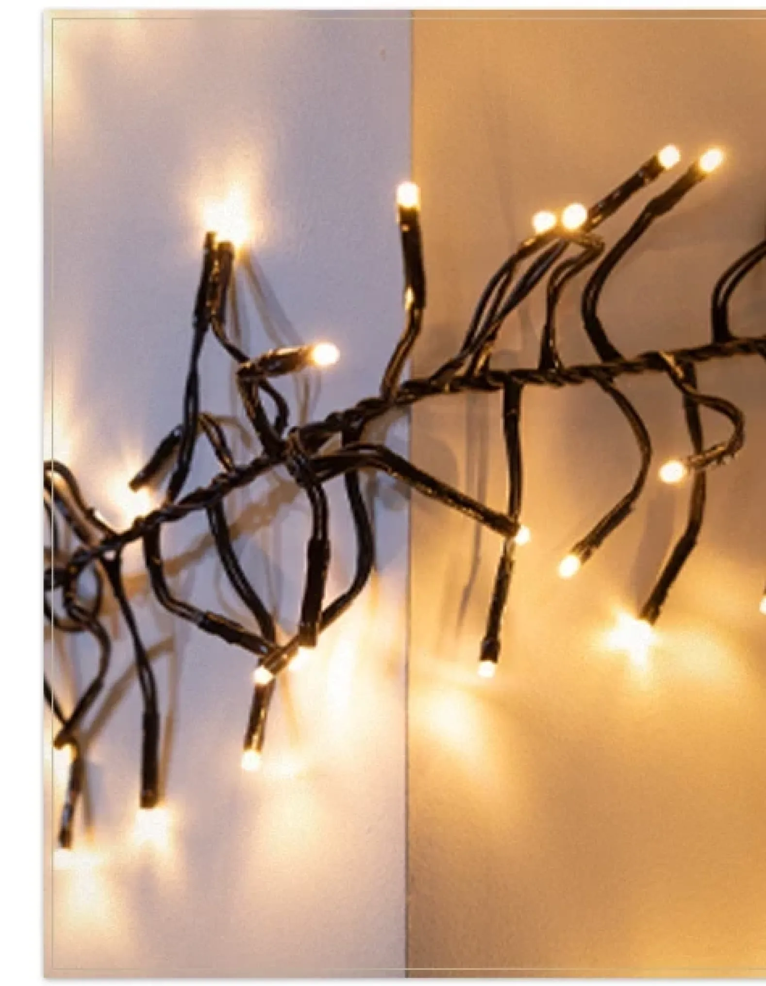 - Features 1,128 warm white LED solar cluster light bulbs with 8-function twinkle effect