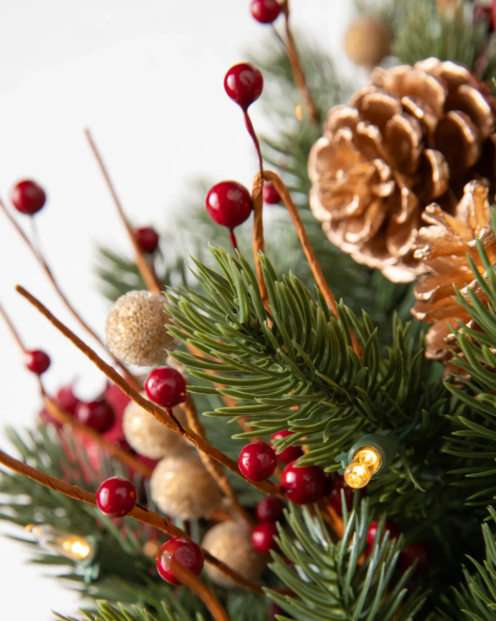Greet your nearest and dearest with European-inspired evergreens. Designed with natural and gilded accents, this collection adds a touch of rustic warmth and beauty to your holiday spaces.