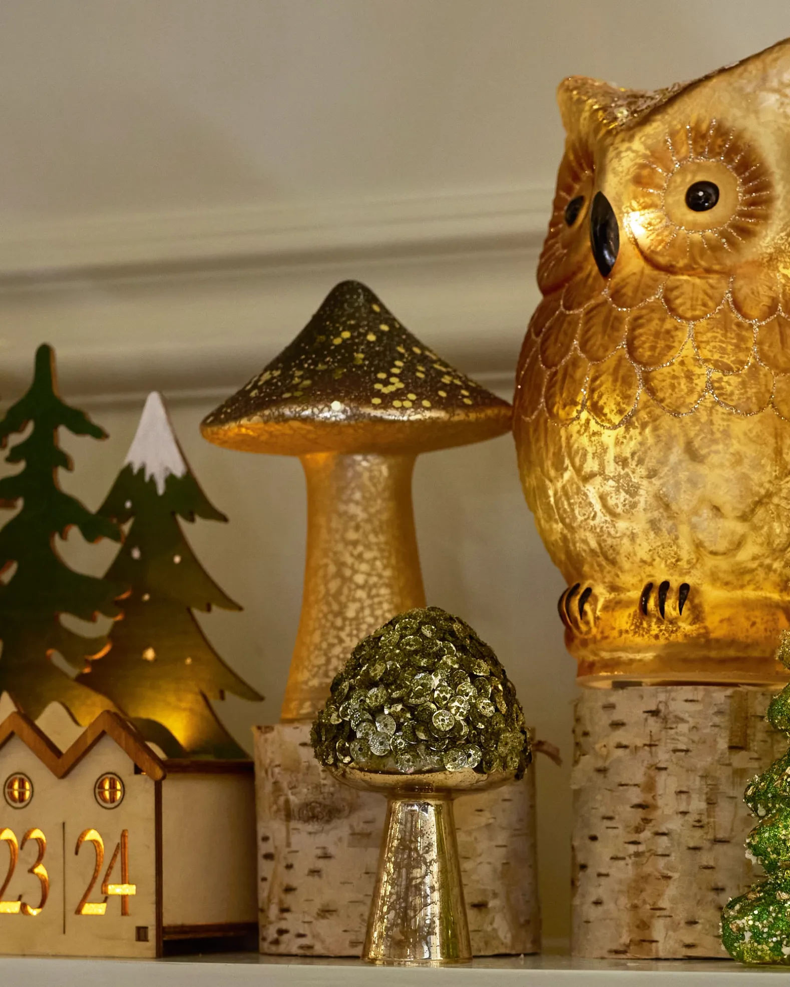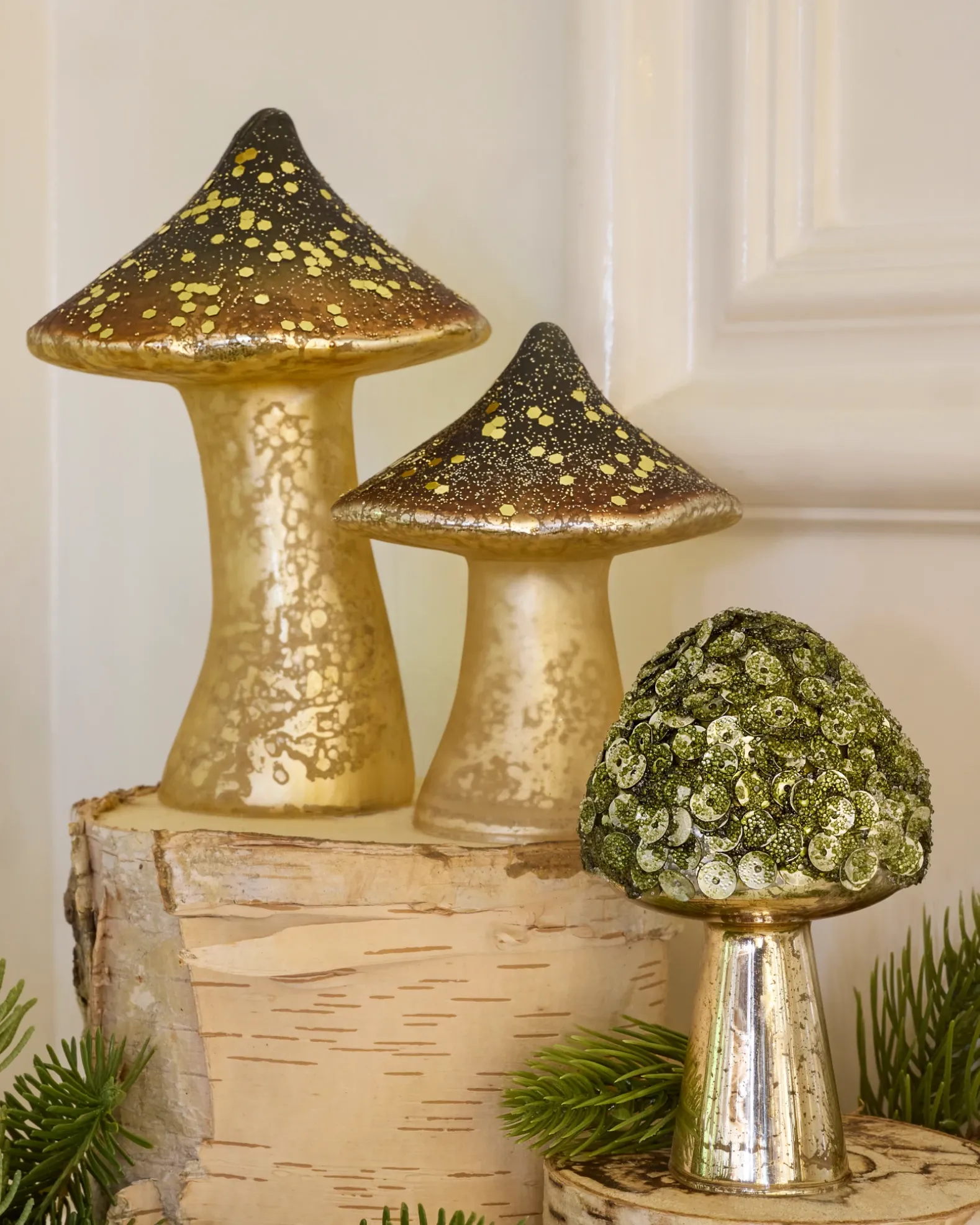 Infuse your holiday display with woodland charm. These mushroom accents bring a touch of whimsy when combined with your well-loved pieces.